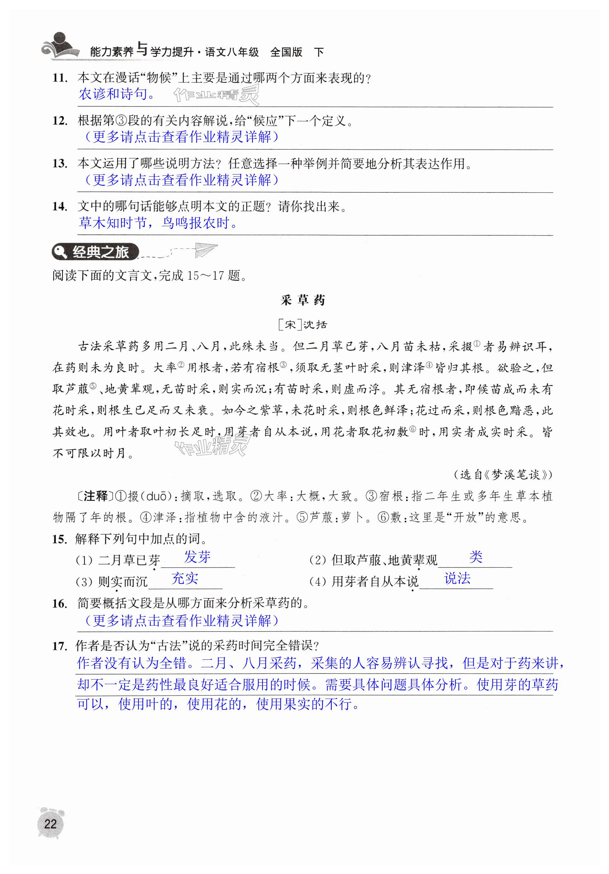 注:目前有些书本章节名称可能整理的还不是很完善,但都是按照顺序排列的,请同学们按照顺序仔细查找。练习册 2024年能力素养与学力提升八年级语文下册人教版 答案主要是用来给同学们做完题方便对答案用的,请勿直接抄袭。