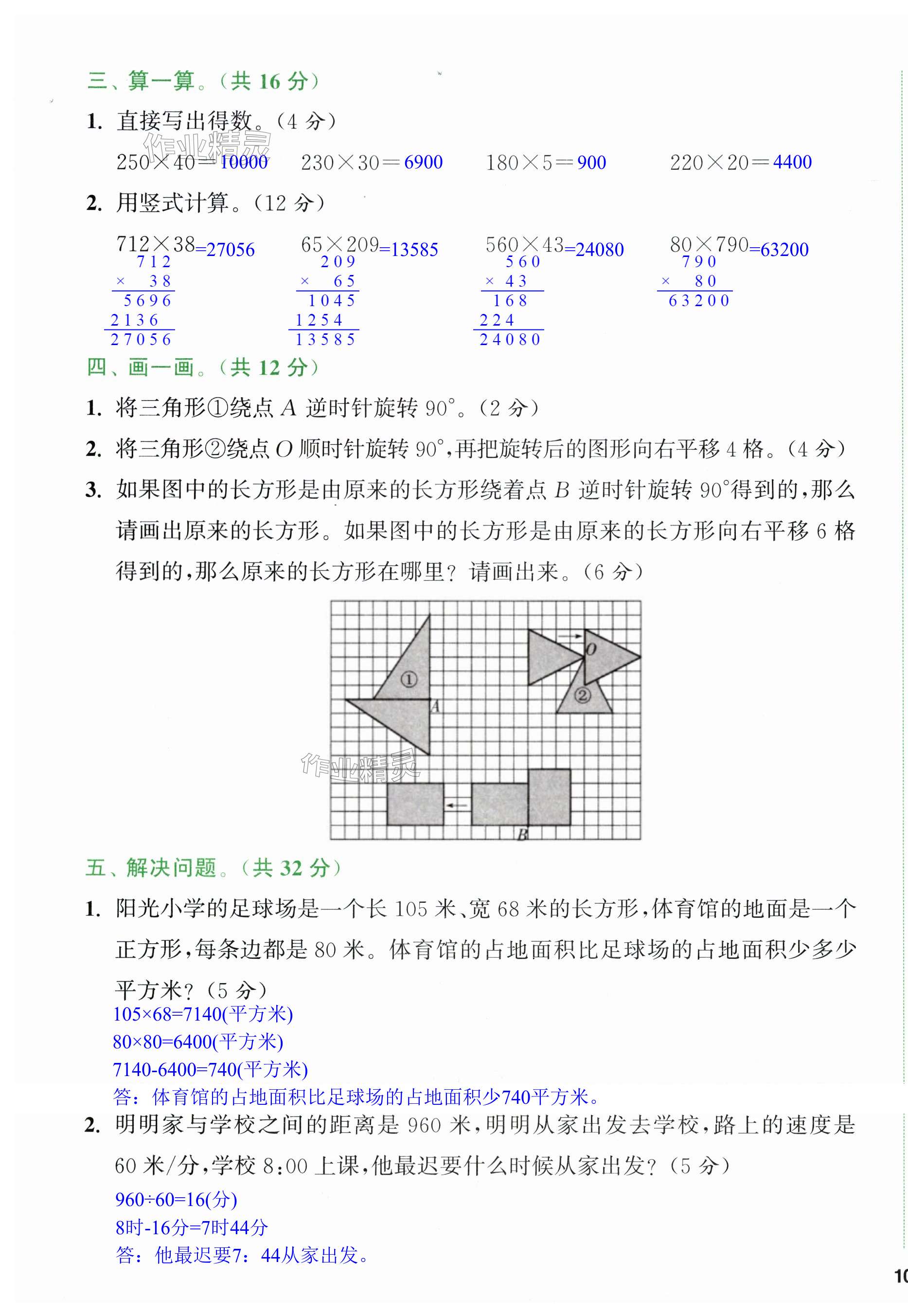 注:目前有些书本章节名称可能整理的还不是很完善,但都是按照顺序排列的,请同学们按照顺序仔细查找。练习册 2024年通城学典课时作业本四年级数学下册苏教版江苏专版 答案主要是用来给同学们做完题方便对答案用的,请勿直接抄袭。