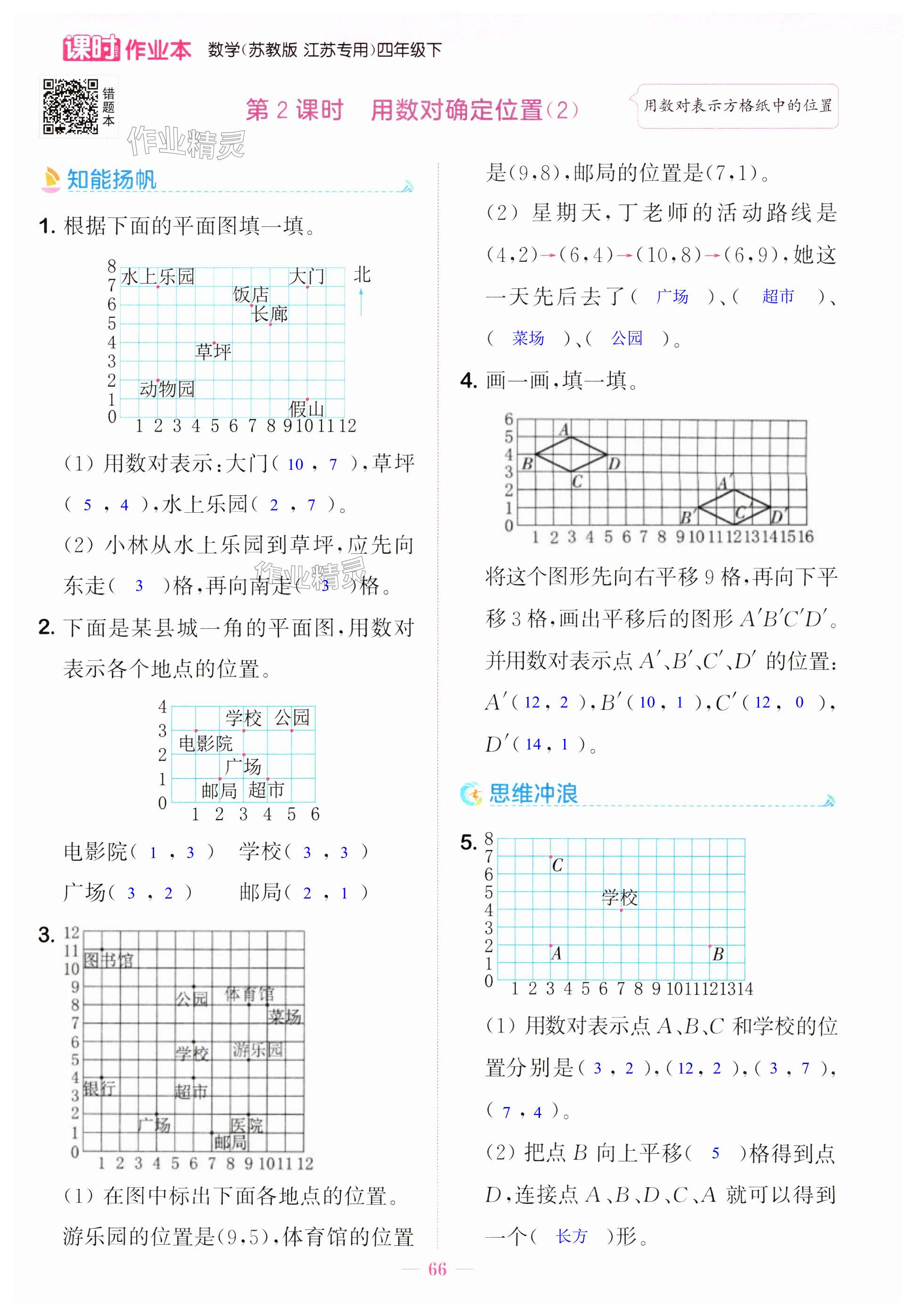 注:目前有些书本章节名称可能整理的还不是很完善,但都是按照顺序排列的,请同学们按照顺序仔细查找。练习册 2024年通城学典课时作业本四年级数学下册苏教版江苏专版 答案主要是用来给同学们做完题方便对答案用的,请勿直接抄袭。