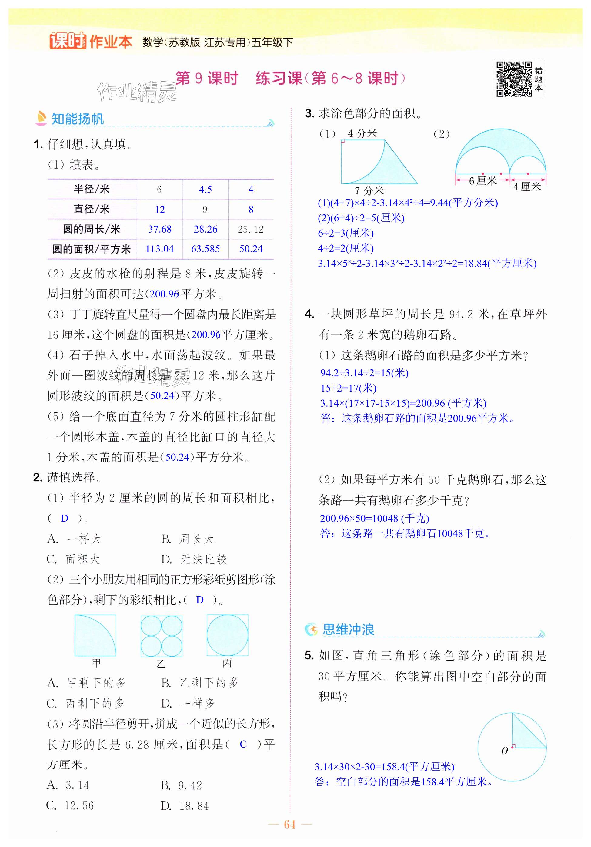 注:目前有些书本章节名称可能整理的还不是很完善,但都是按照顺序排列的,请同学们按照顺序仔细查找。练习册 2024年通城学典课时作业本五年级数学下册苏教版江苏专版 答案主要是用来给同学们做完题方便对答案用的,请勿直接抄袭。