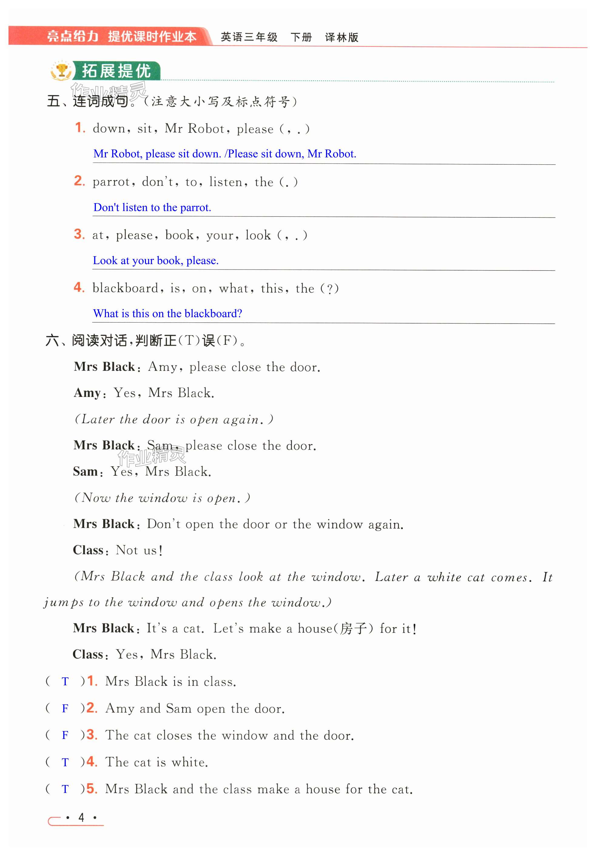注:目前有些书本章节名称可能整理的还不是很完善,但都是按照顺序排列的,请同学们按照顺序仔细查找。练习册 2024年亮点给力提优课时作业本三年级英语下册译林版 答案主要是用来给同学们做完题方便对答案用的,请勿直接抄袭。