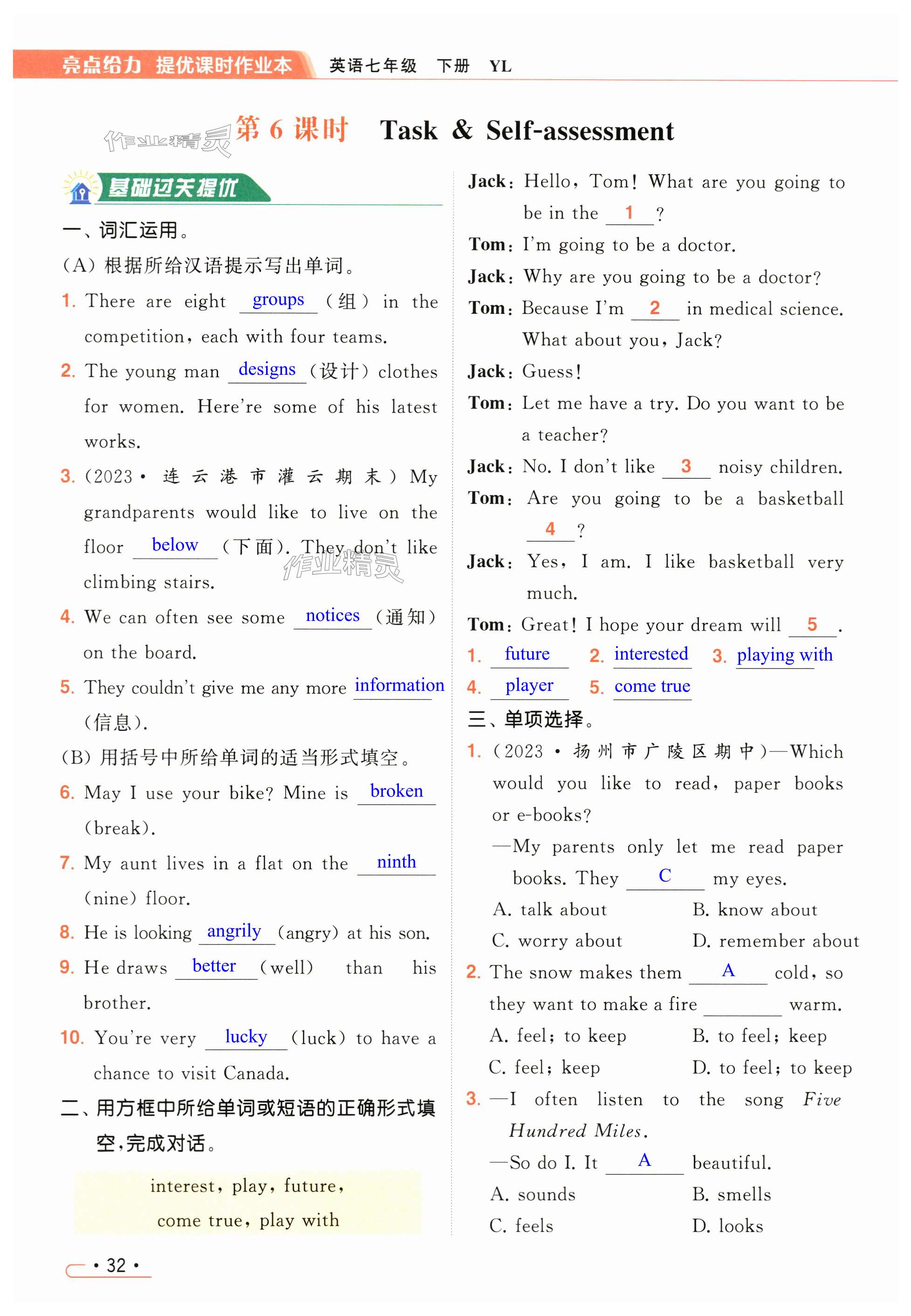 注:目前有些书本章节名称可能整理的还不是很完善,但都是按照顺序排列的,请同学们按照顺序仔细查找。练习册 2024年亮点给力提优课时作业本七年级英语下册译林版 答案主要是用来给同学们做完题方便对答案用的,请勿直接抄袭。
