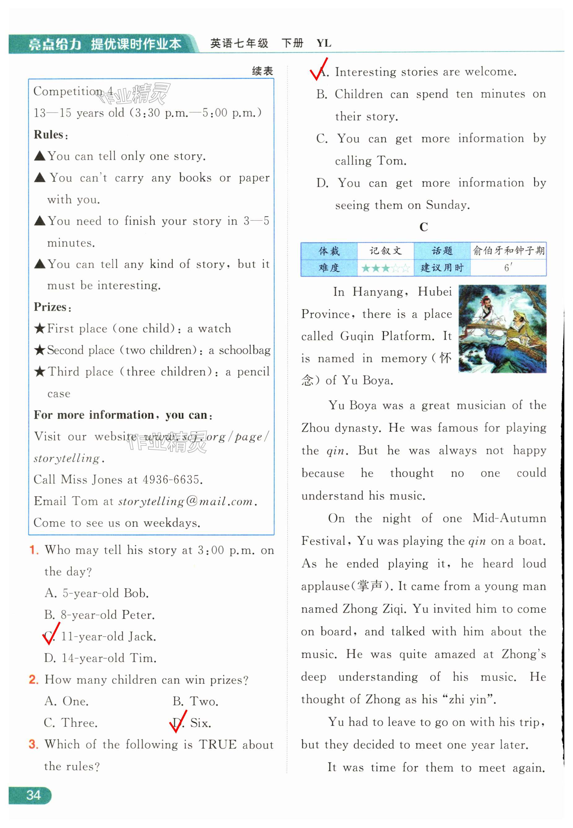 注:目前有些书本章节名称可能整理的还不是很完善,但都是按照顺序排列的,请同学们按照顺序仔细查找。练习册 2024年亮点给力提优课时作业本七年级英语下册译林版 答案主要是用来给同学们做完题方便对答案用的,请勿直接抄袭。