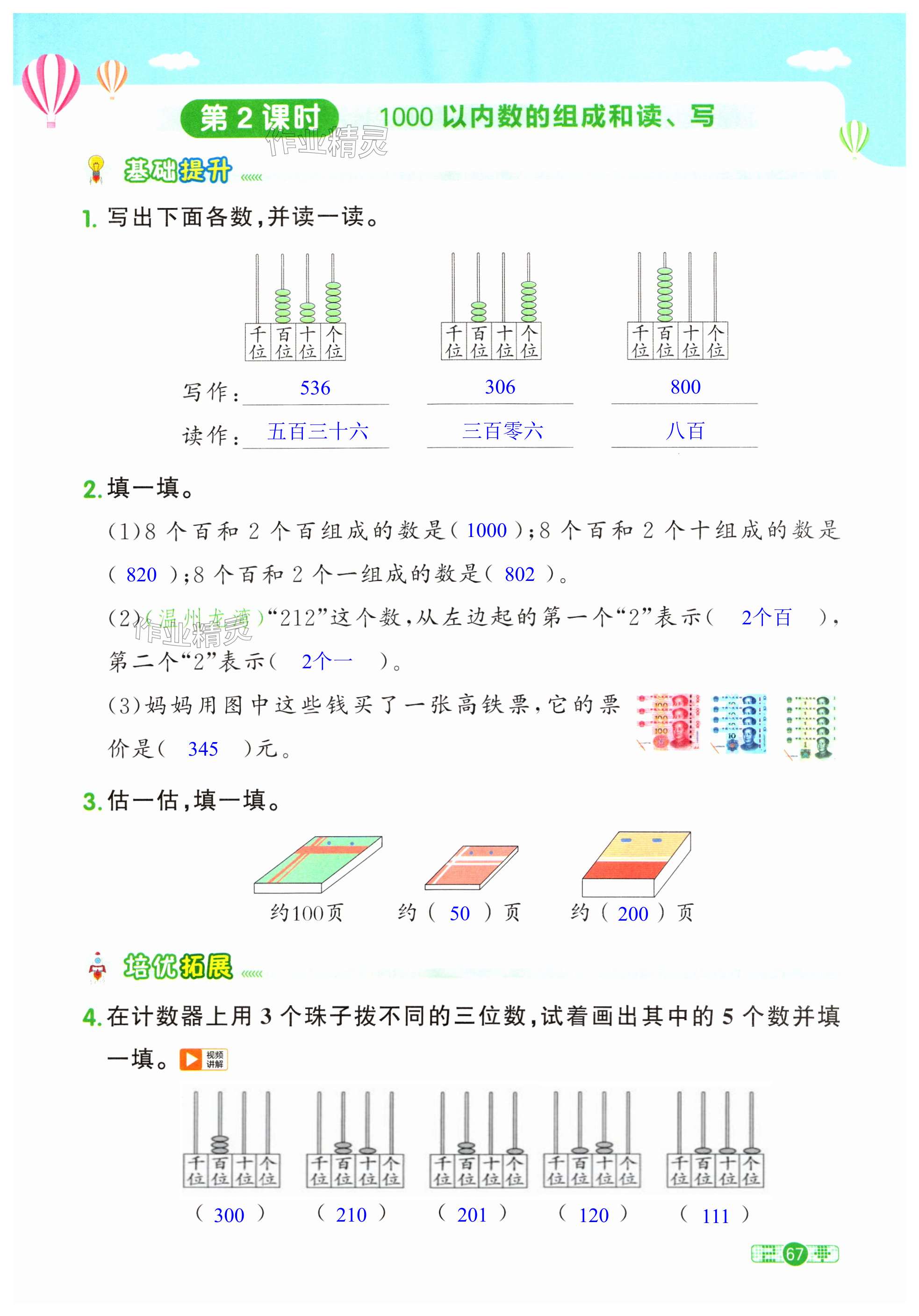 注:目前有些书本章节名称可能整理的还不是很完善,但都是按照顺序排列的,请同学们按照顺序仔细查找。练习册 2024年阳光同学课时达标训练二年级数学下册人教版浙江专版 答案主要是用来给同学们做完题方便对答案用的,请勿直接抄袭。