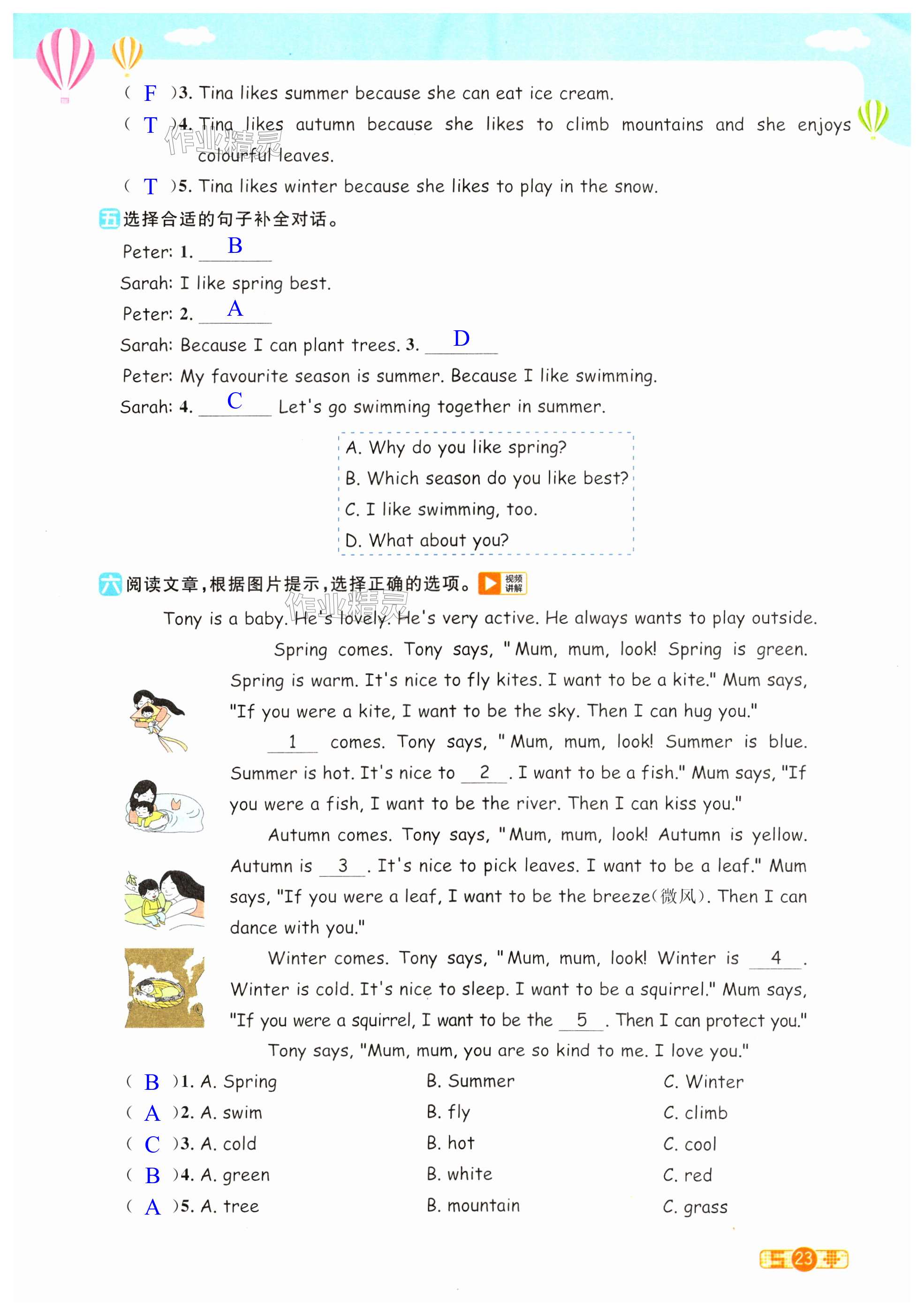 注:目前有些书本章节名称可能整理的还不是很完善,但都是按照顺序排列的,请同学们按照顺序仔细查找。练习册 2024年阳光同学课时达标训练五年级英语下册人教PEP版浙江专版 答案主要是用来给同学们做完题方便对答案用的,请勿直接抄袭。