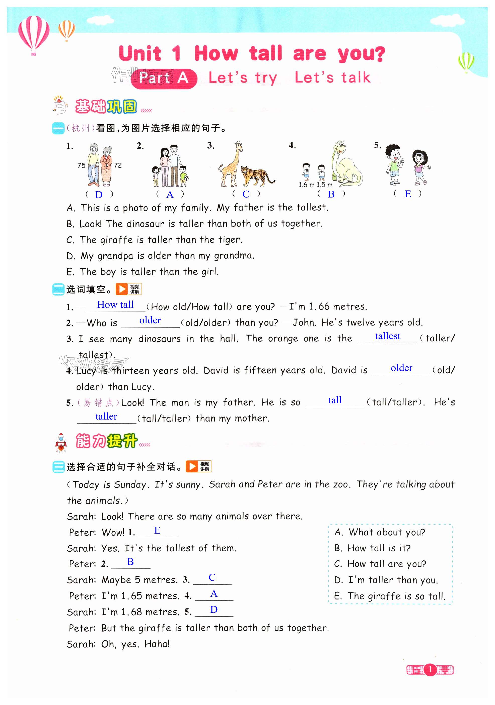 注:目前有些书本章节名称可能整理的还不是很完善,但都是按照顺序排列的,请同学们按照顺序仔细查找。练习册 2024年阳光同学课时达标训练六年级英语下册人教PEP版浙江专版 答案主要是用来给同学们做完题方便对答案用的,请勿直接抄袭。