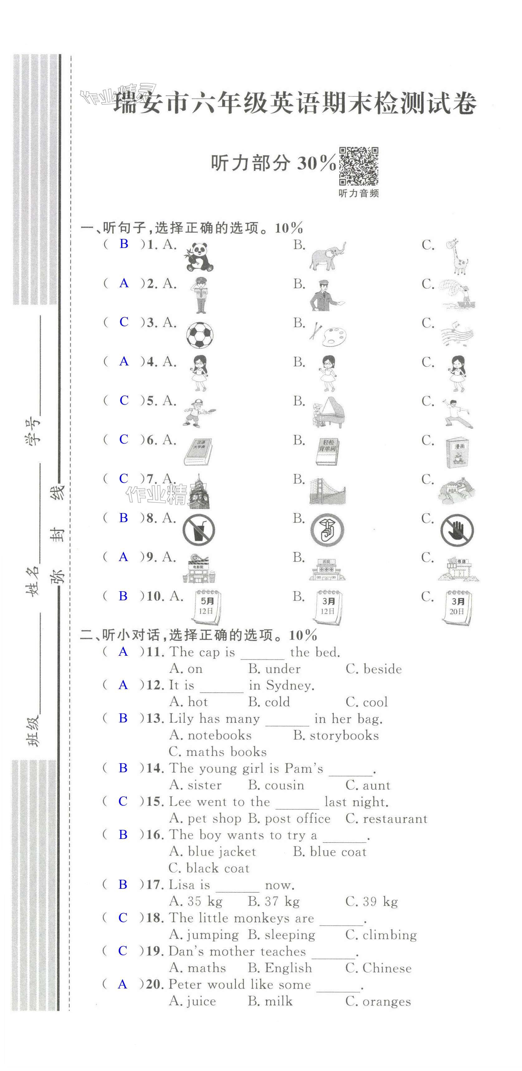 注:目前有些书本章节名称可能整理的还不是很完善,但都是按照顺序排列的,请同学们按照顺序仔细查找。练习册 2024年阳光同学课时达标训练六年级英语下册人教PEP版浙江专版 答案主要是用来给同学们做完题方便对答案用的,请勿直接抄袭。