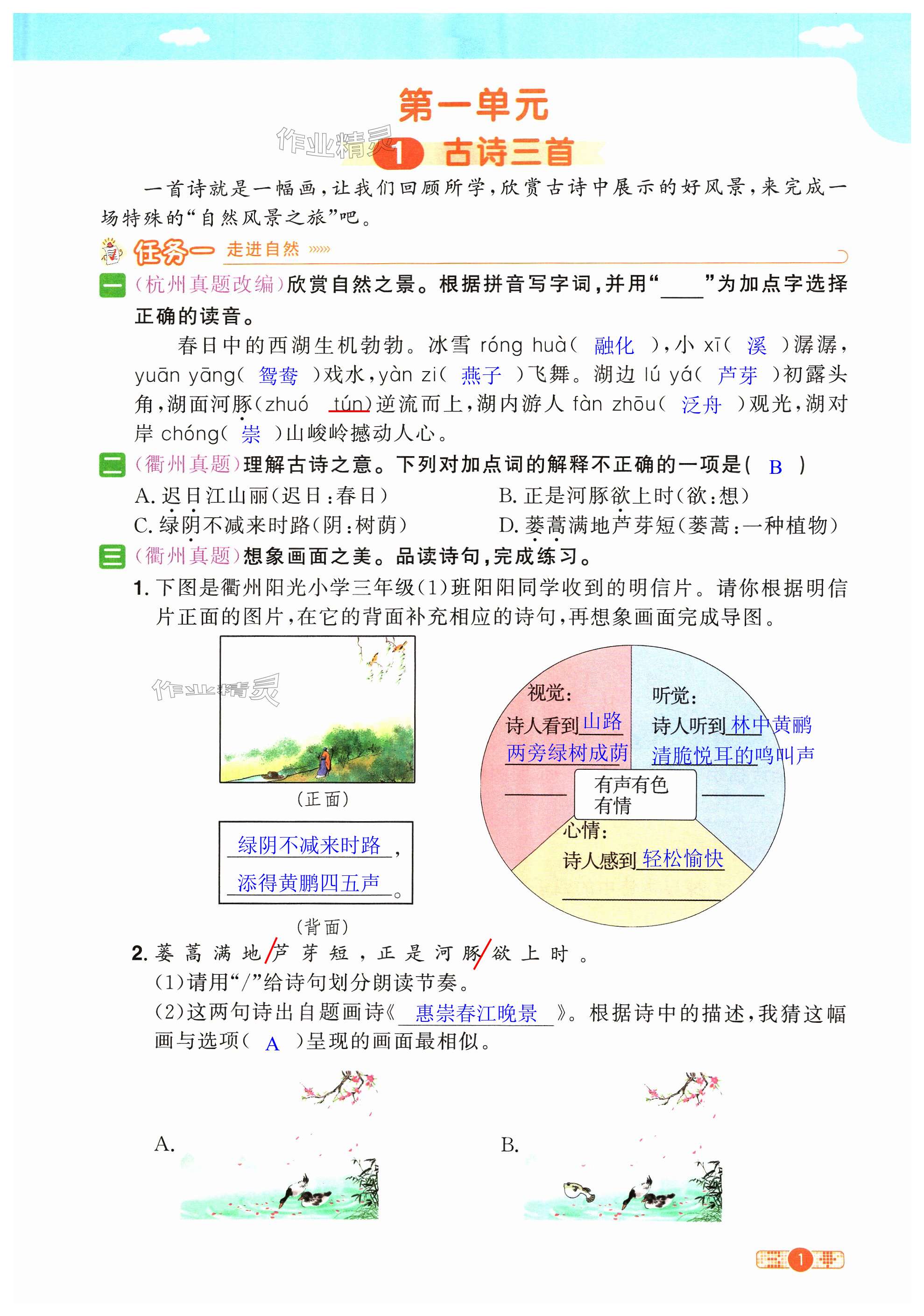 注:目前有些书本章节名称可能整理的还不是很完善,但都是按照顺序排列的,请同学们按照顺序仔细查找。练习册 2024年阳光同学课时达标训练三年级语文下册人教版浙江专版 答案主要是用来给同学们做完题方便对答案用的,请勿直接抄袭。