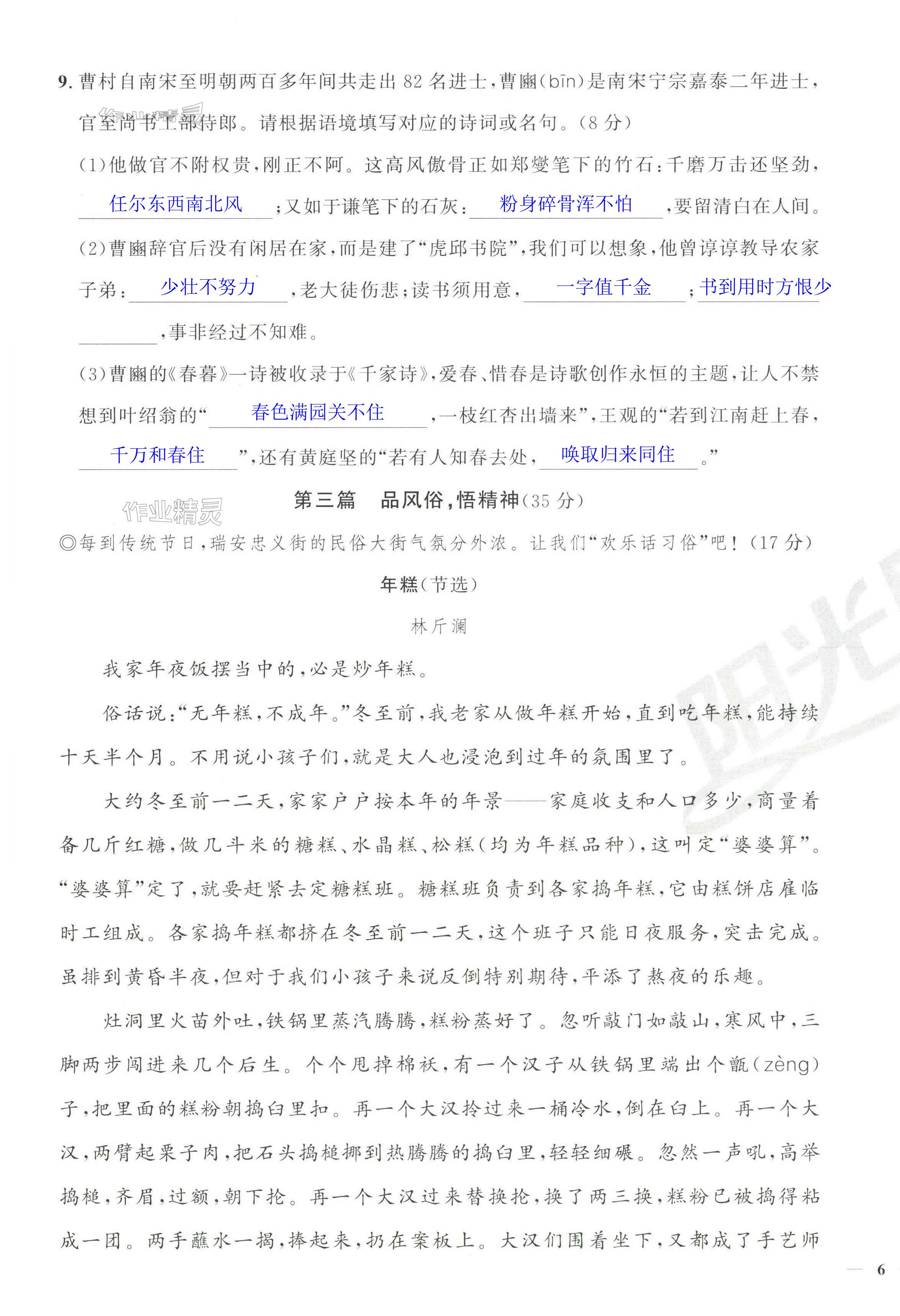 注:目前有些书本章节名称可能整理的还不是很完善,但都是按照顺序排列的,请同学们按照顺序仔细查找。练习册 2024年阳光同学课时达标训练六年级语文下册人教版浙江专版 答案主要是用来给同学们做完题方便对答案用的,请勿直接抄袭。