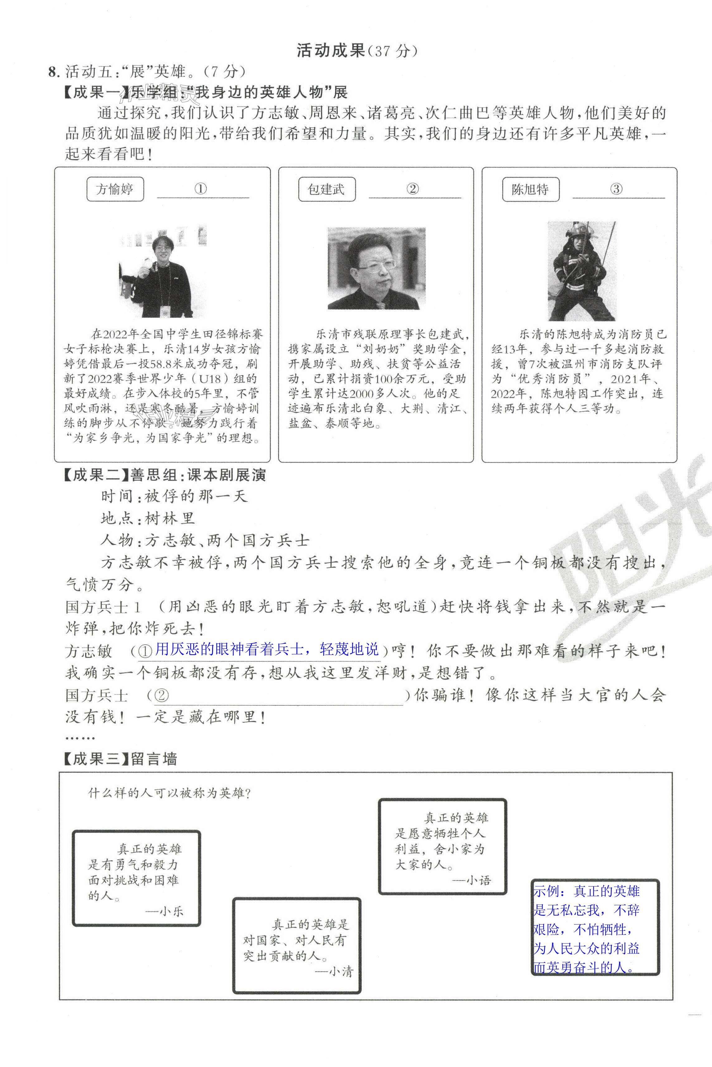 注:目前有些书本章节名称可能整理的还不是很完善,但都是按照顺序排列的,请同学们按照顺序仔细查找。练习册 2024年阳光同学课时达标训练五年级语文下册人教版浙江专版 答案主要是用来给同学们做完题方便对答案用的,请勿直接抄袭。