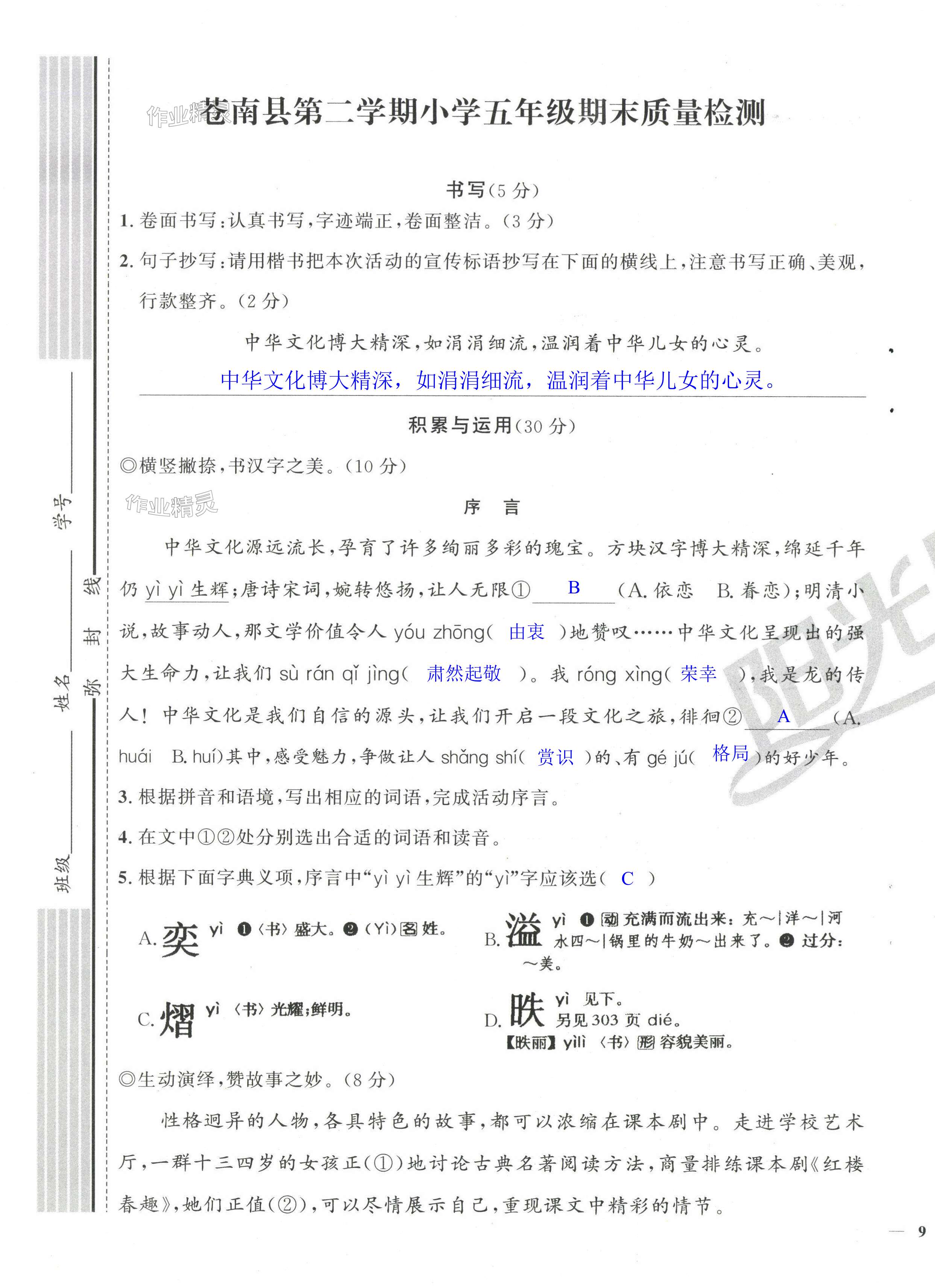 注:目前有些书本章节名称可能整理的还不是很完善,但都是按照顺序排列的,请同学们按照顺序仔细查找。练习册 2024年阳光同学课时达标训练五年级语文下册人教版浙江专版 答案主要是用来给同学们做完题方便对答案用的,请勿直接抄袭。