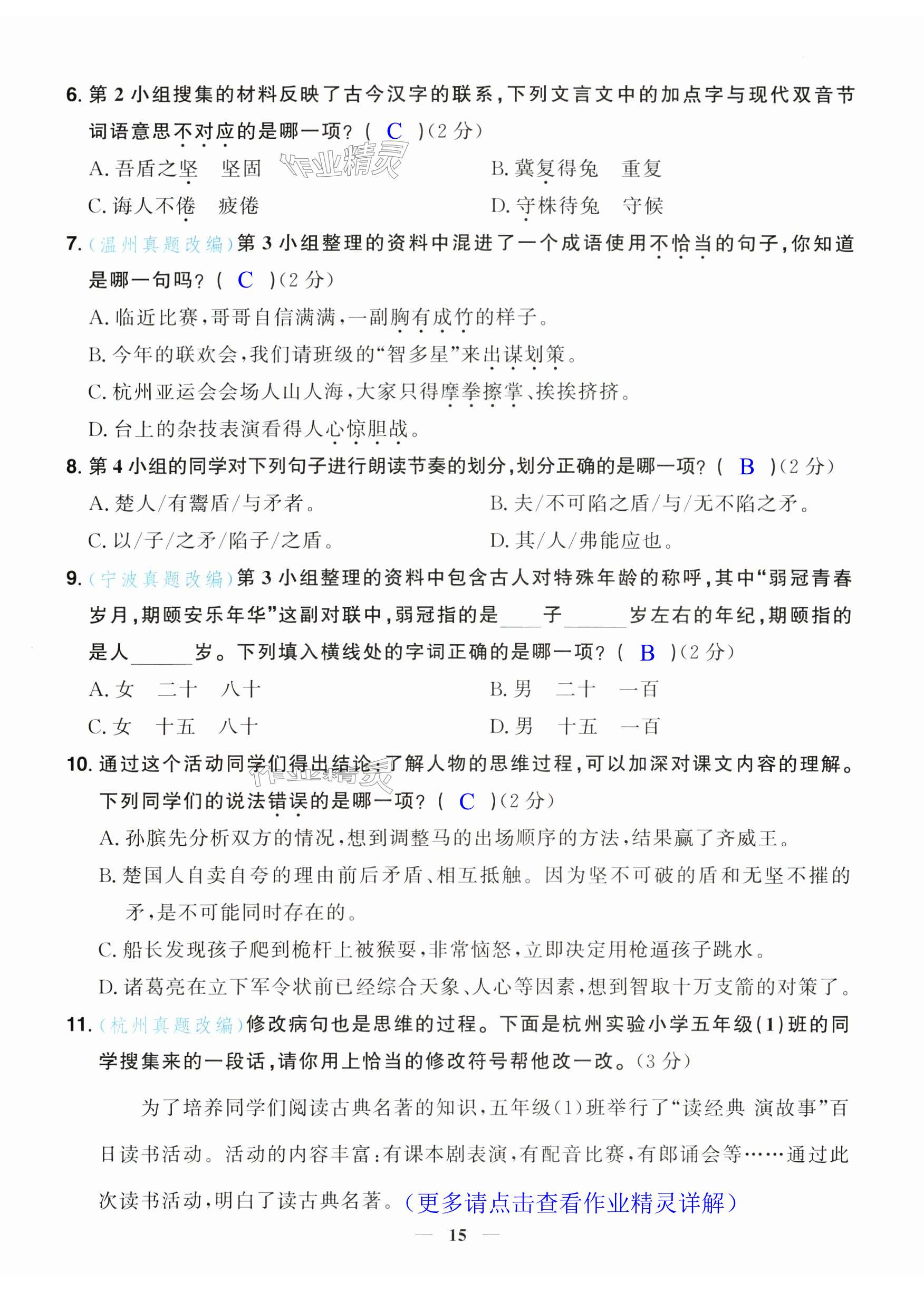 注:目前有些书本章节名称可能整理的还不是很完善,但都是按照顺序排列的,请同学们按照顺序仔细查找。练习册 2024年阳光同学课时达标训练五年级语文下册人教版浙江专版 答案主要是用来给同学们做完题方便对答案用的,请勿直接抄袭。