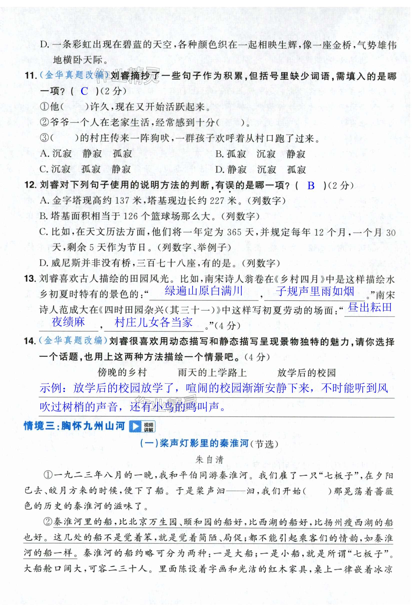 注:目前有些书本章节名称可能整理的还不是很完善,但都是按照顺序排列的,请同学们按照顺序仔细查找。练习册 2024年阳光同学课时达标训练五年级语文下册人教版浙江专版 答案主要是用来给同学们做完题方便对答案用的,请勿直接抄袭。