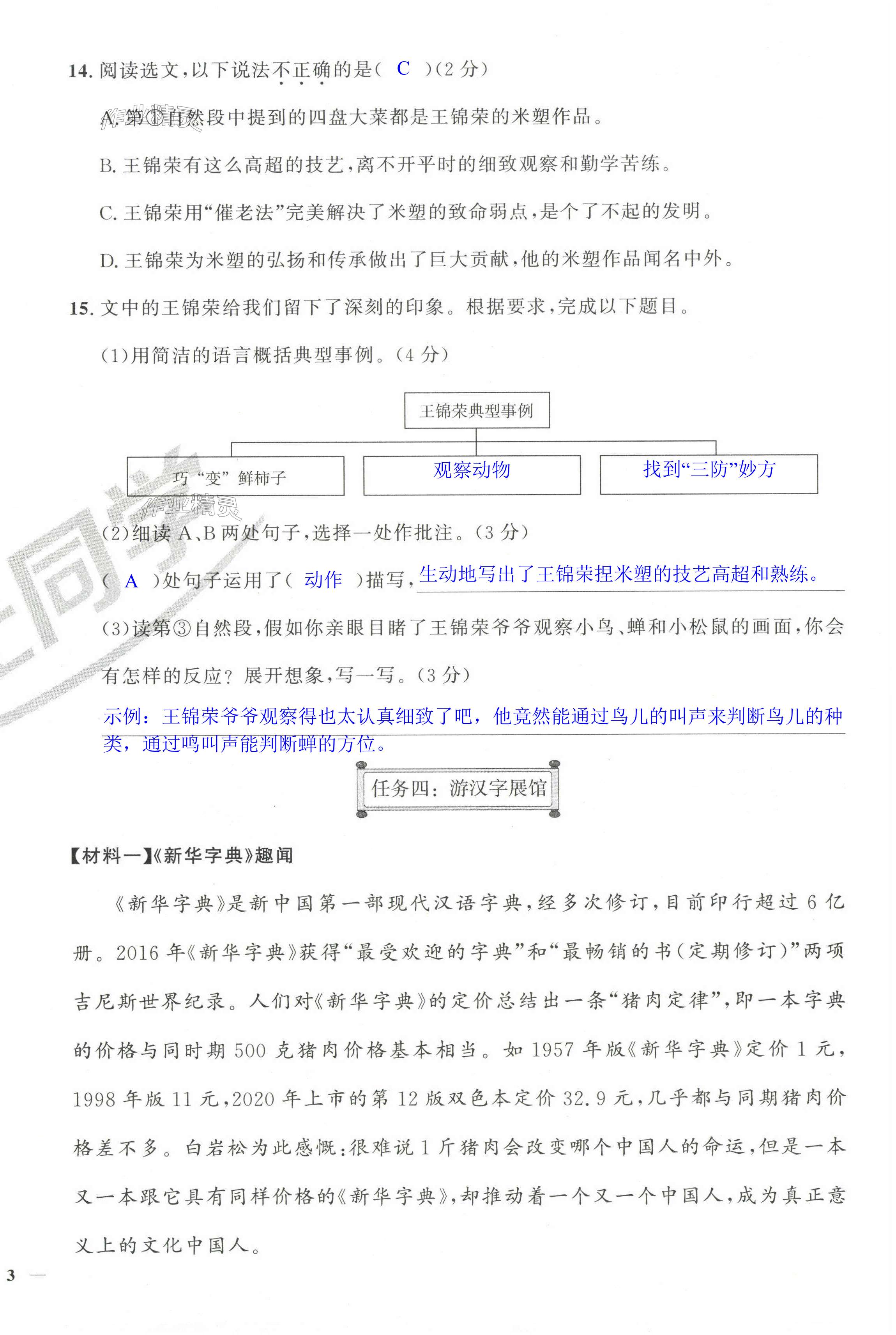 注:目前有些书本章节名称可能整理的还不是很完善,但都是按照顺序排列的,请同学们按照顺序仔细查找。练习册 2024年阳光同学课时达标训练五年级语文下册人教版浙江专版 答案主要是用来给同学们做完题方便对答案用的,请勿直接抄袭。