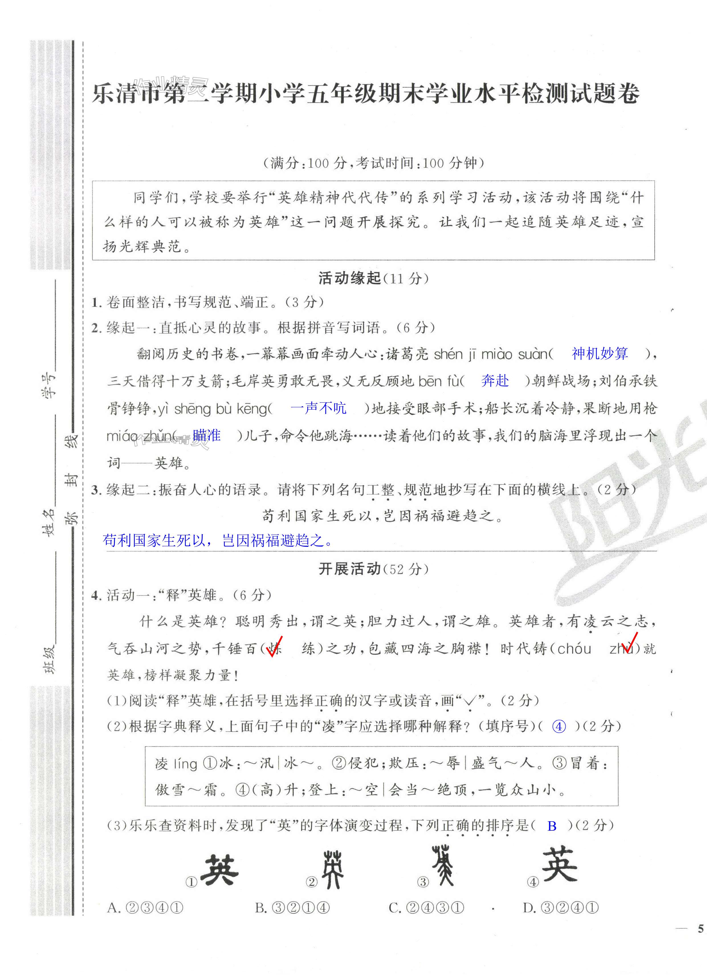 注:目前有些书本章节名称可能整理的还不是很完善,但都是按照顺序排列的,请同学们按照顺序仔细查找。练习册 2024年阳光同学课时达标训练五年级语文下册人教版浙江专版 答案主要是用来给同学们做完题方便对答案用的,请勿直接抄袭。