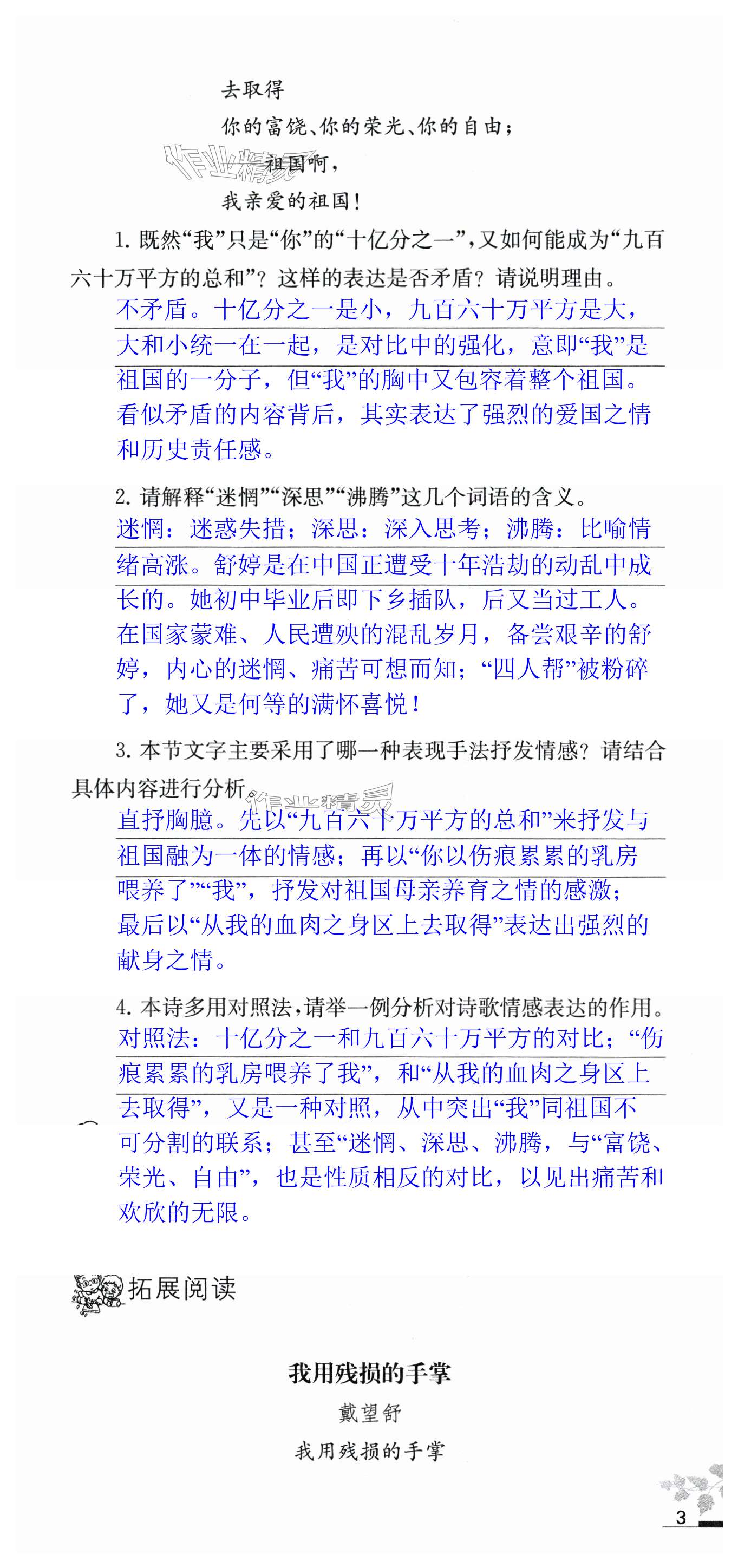 注:目前有些书本章节名称可能整理的还不是很完善,但都是按照顺序排列的,请同学们按照顺序仔细查找。练习册 2024年补充习题江苏九年级语文下册人教版 答案主要是用来给同学们做完题方便对答案用的,请勿直接抄袭。