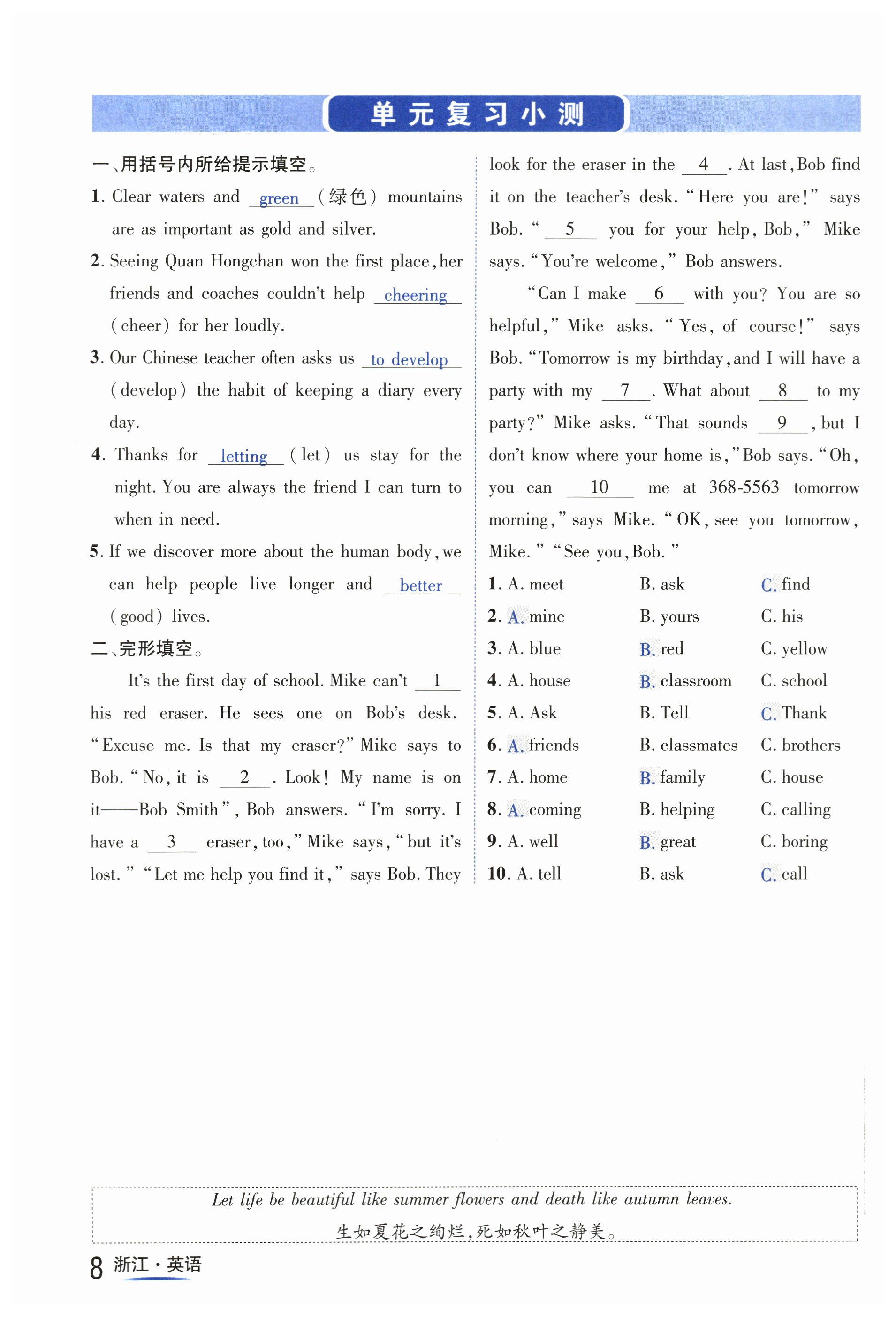 注:目前有些书本章节名称可能整理的还不是很完善,但都是按照顺序排列的,请同学们按照顺序仔细查找。练习册 2024年国华图书中考拐点英语人教版浙江专版 答案主要是用来给同学们做完题方便对答案用的,请勿直接抄袭。