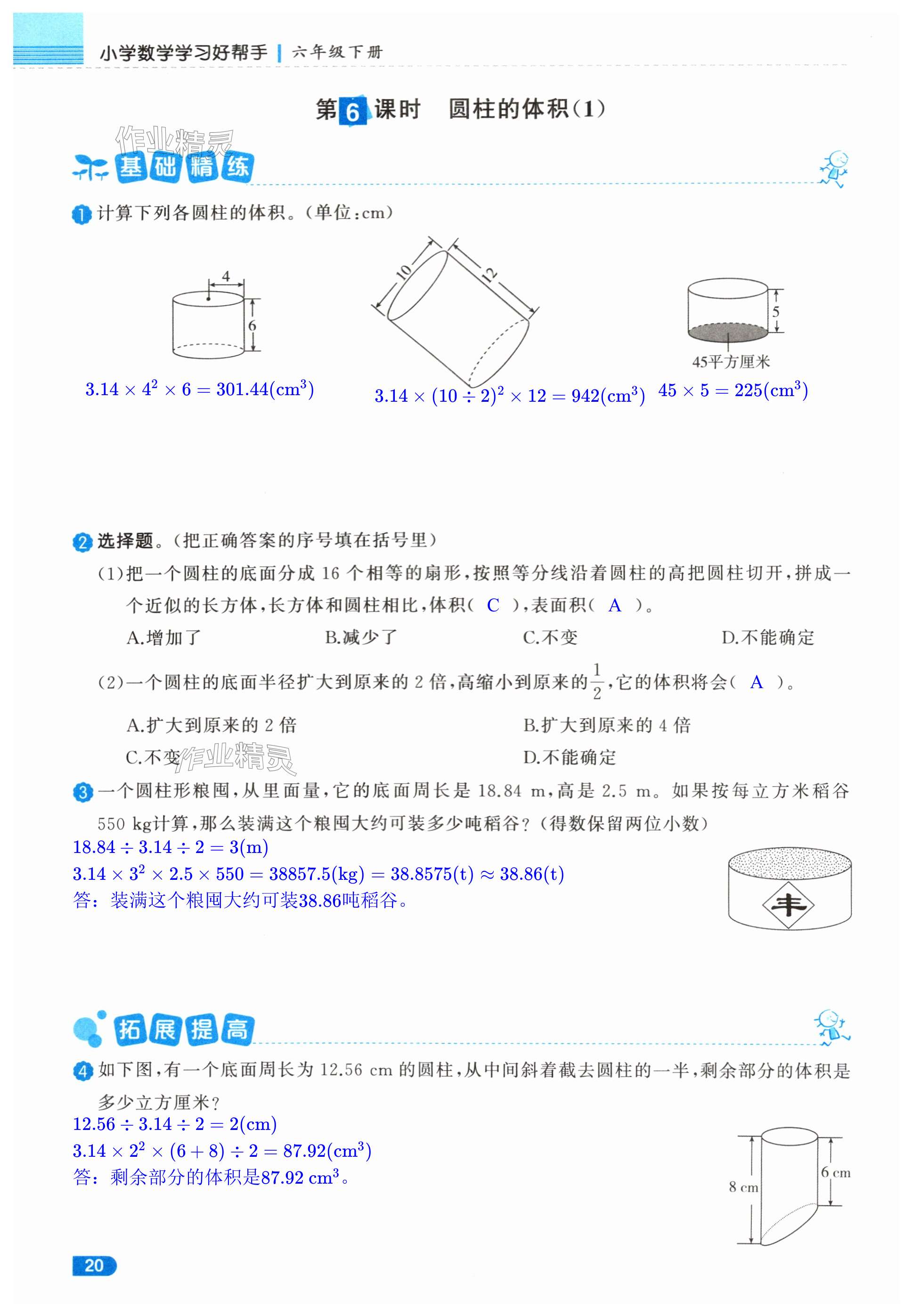 注:目前有些书本章节名称可能整理的还不是很完善,但都是按照顺序排列的,请同学们按照顺序仔细查找。练习册 2024年小学学习好帮手六年级数学下册人教版 答案主要是用来给同学们做完题方便对答案用的,请勿直接抄袭。