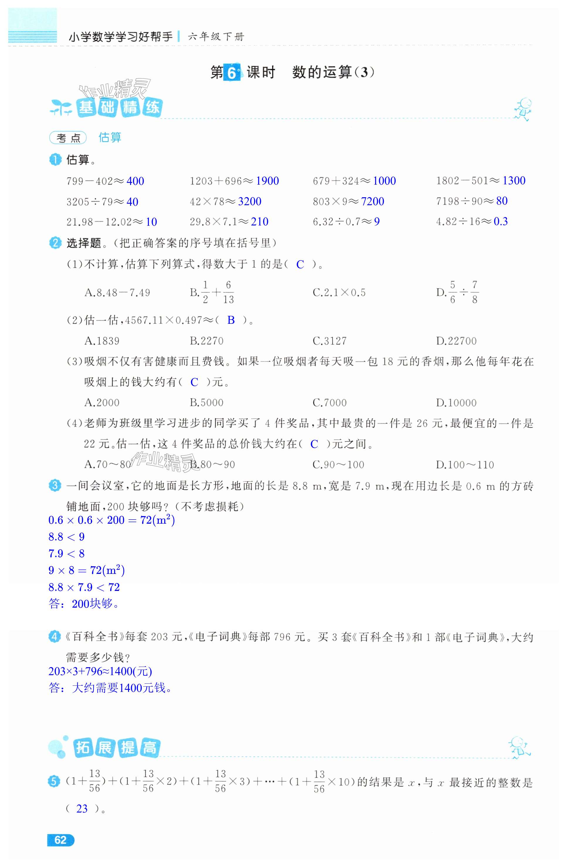 注:目前有些书本章节名称可能整理的还不是很完善,但都是按照顺序排列的,请同学们按照顺序仔细查找。练习册 2024年小学学习好帮手六年级数学下册人教版 答案主要是用来给同学们做完题方便对答案用的,请勿直接抄袭。