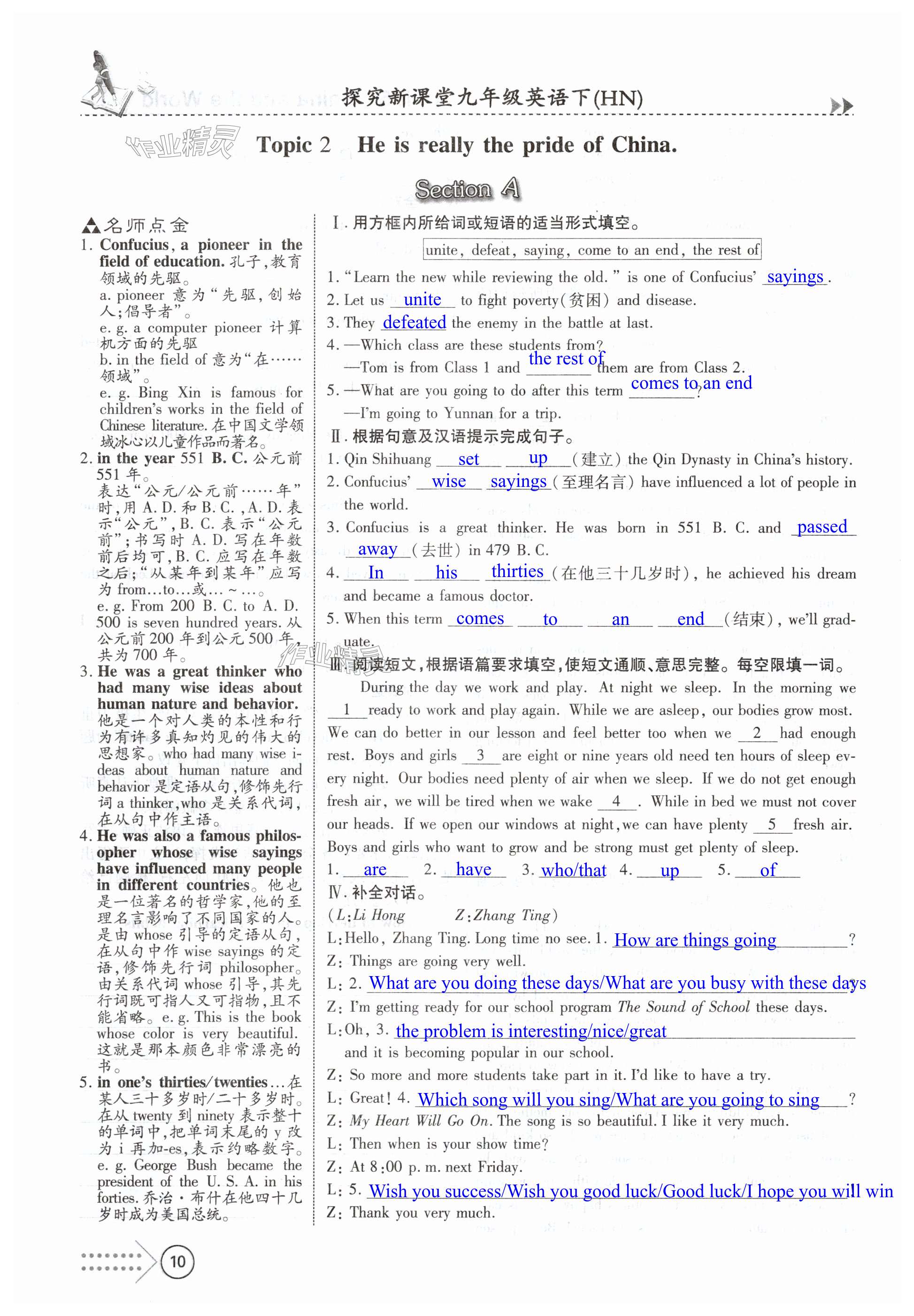 注:目前有些书本章节名称可能整理的还不是很完善,但都是按照顺序排列的,请同学们按照顺序仔细查找。练习册 2024年探究新课堂九年级英语下册仁爱版河南专版 答案主要是用来给同学们做完题方便对答案用的,请勿直接抄袭。