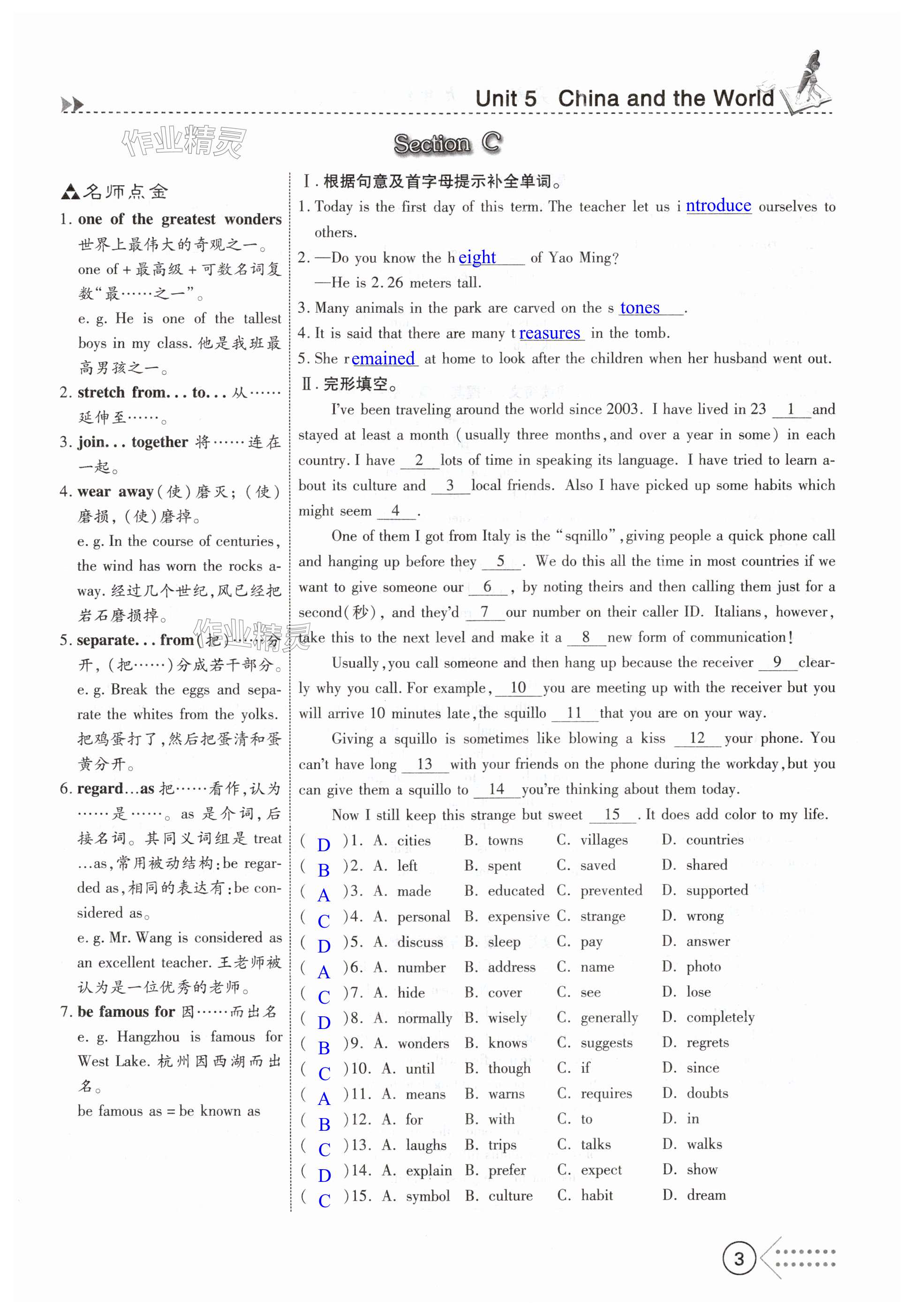 注:目前有些书本章节名称可能整理的还不是很完善,但都是按照顺序排列的,请同学们按照顺序仔细查找。练习册 2024年探究新课堂九年级英语下册仁爱版河南专版 答案主要是用来给同学们做完题方便对答案用的,请勿直接抄袭。