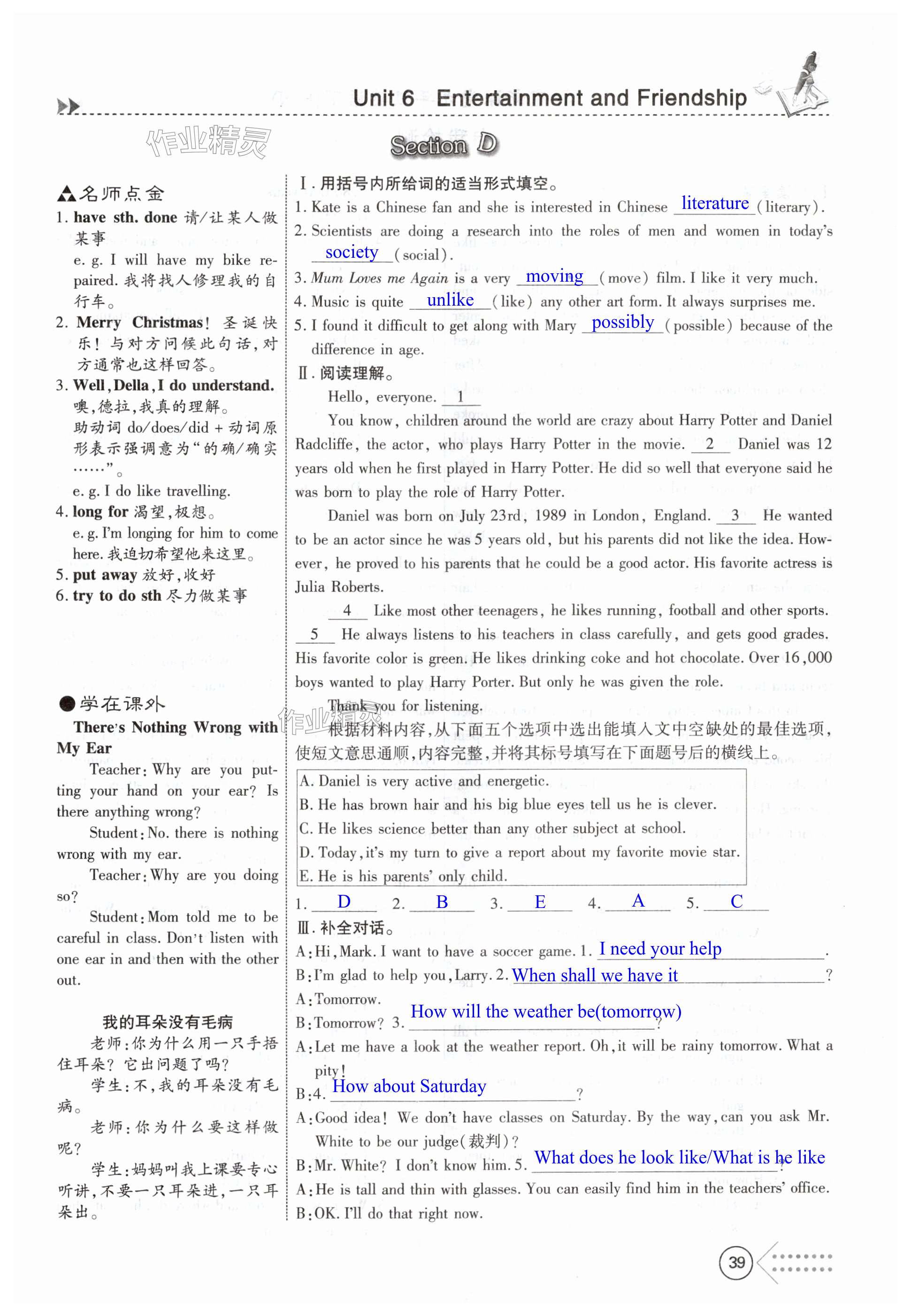 注:目前有些书本章节名称可能整理的还不是很完善,但都是按照顺序排列的,请同学们按照顺序仔细查找。练习册 2024年探究新课堂九年级英语下册仁爱版河南专版 答案主要是用来给同学们做完题方便对答案用的,请勿直接抄袭。