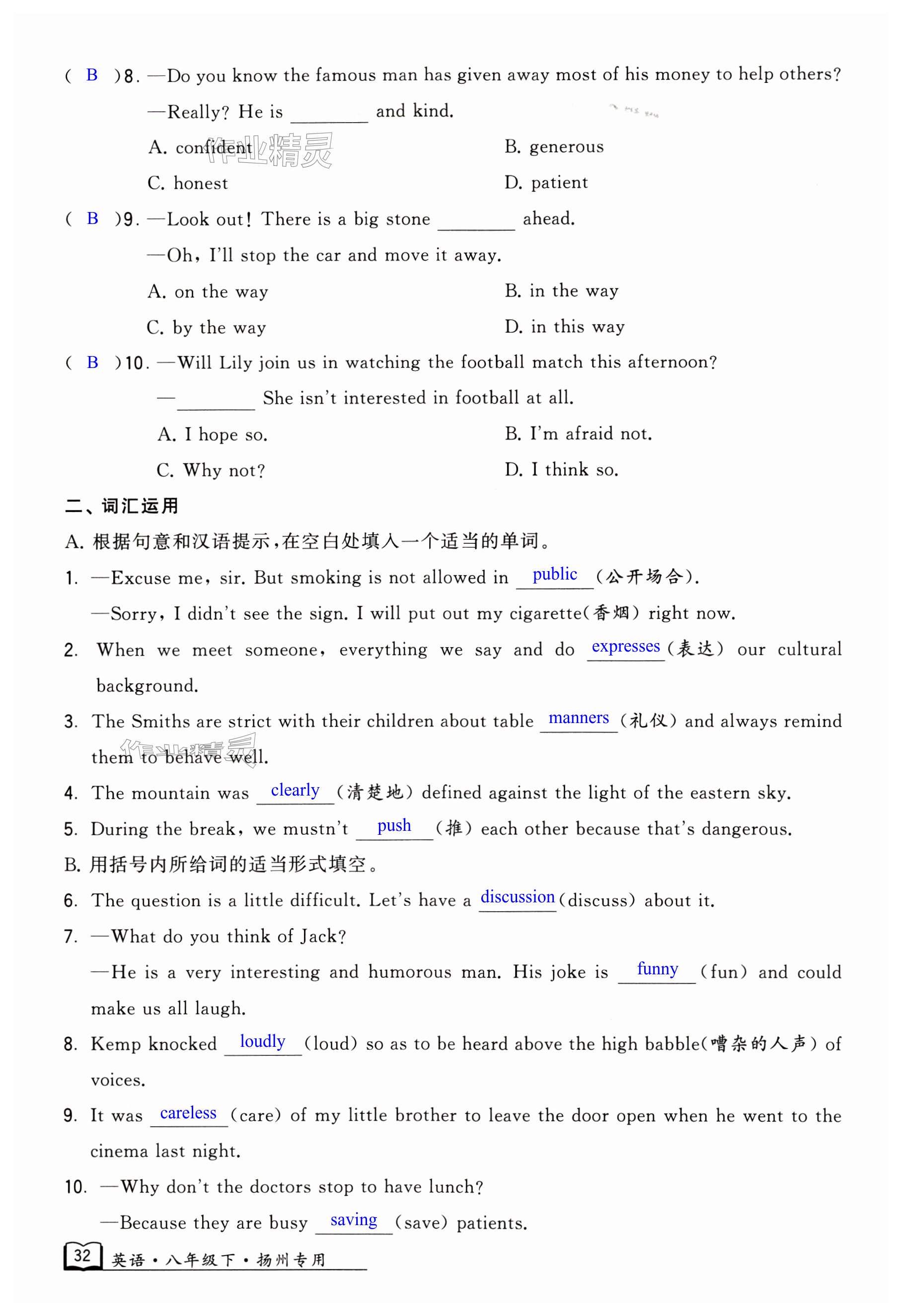 注:目前有些书本章节名称可能整理的还不是很完善,但都是按照顺序排列的,请同学们按照顺序仔细查找。练习册 2024年经纶学典学霸八年级英语下册译林版扬州专版 答案主要是用来给同学们做完题方便对答案用的,请勿直接抄袭。