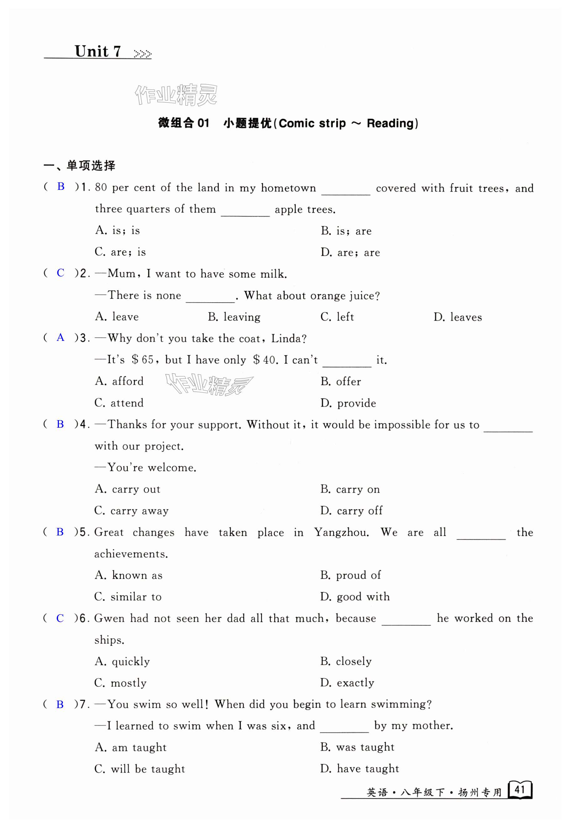 注:目前有些书本章节名称可能整理的还不是很完善,但都是按照顺序排列的,请同学们按照顺序仔细查找。练习册 2024年经纶学典学霸八年级英语下册译林版扬州专版 答案主要是用来给同学们做完题方便对答案用的,请勿直接抄袭。