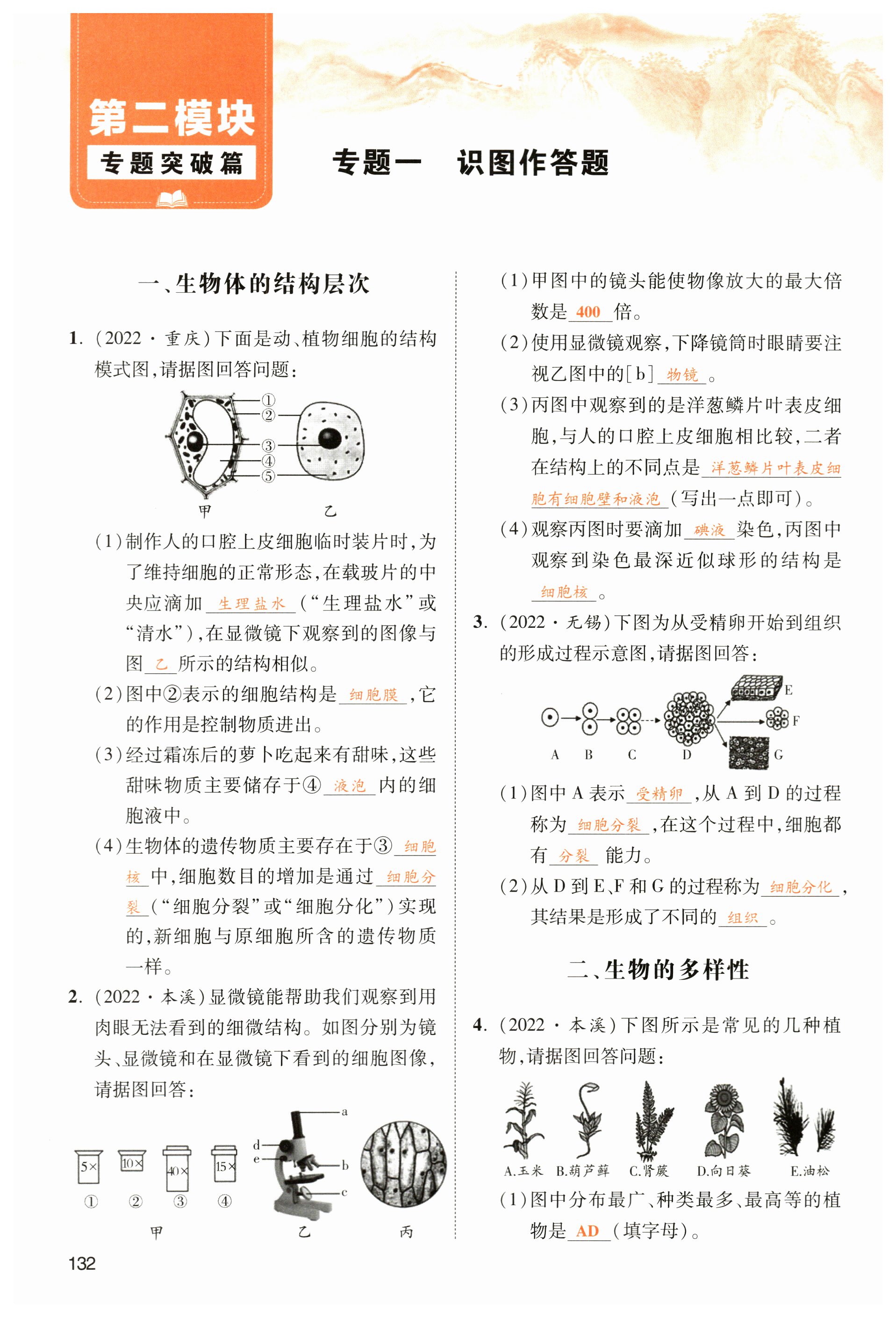 注:目前有些书本章节名称可能整理的还不是很完善,但都是按照顺序排列的,请同学们按照顺序仔细查找。练习册 2024年中考状元生物 答案主要是用来给同学们做完题方便对答案用的,请勿直接抄袭。