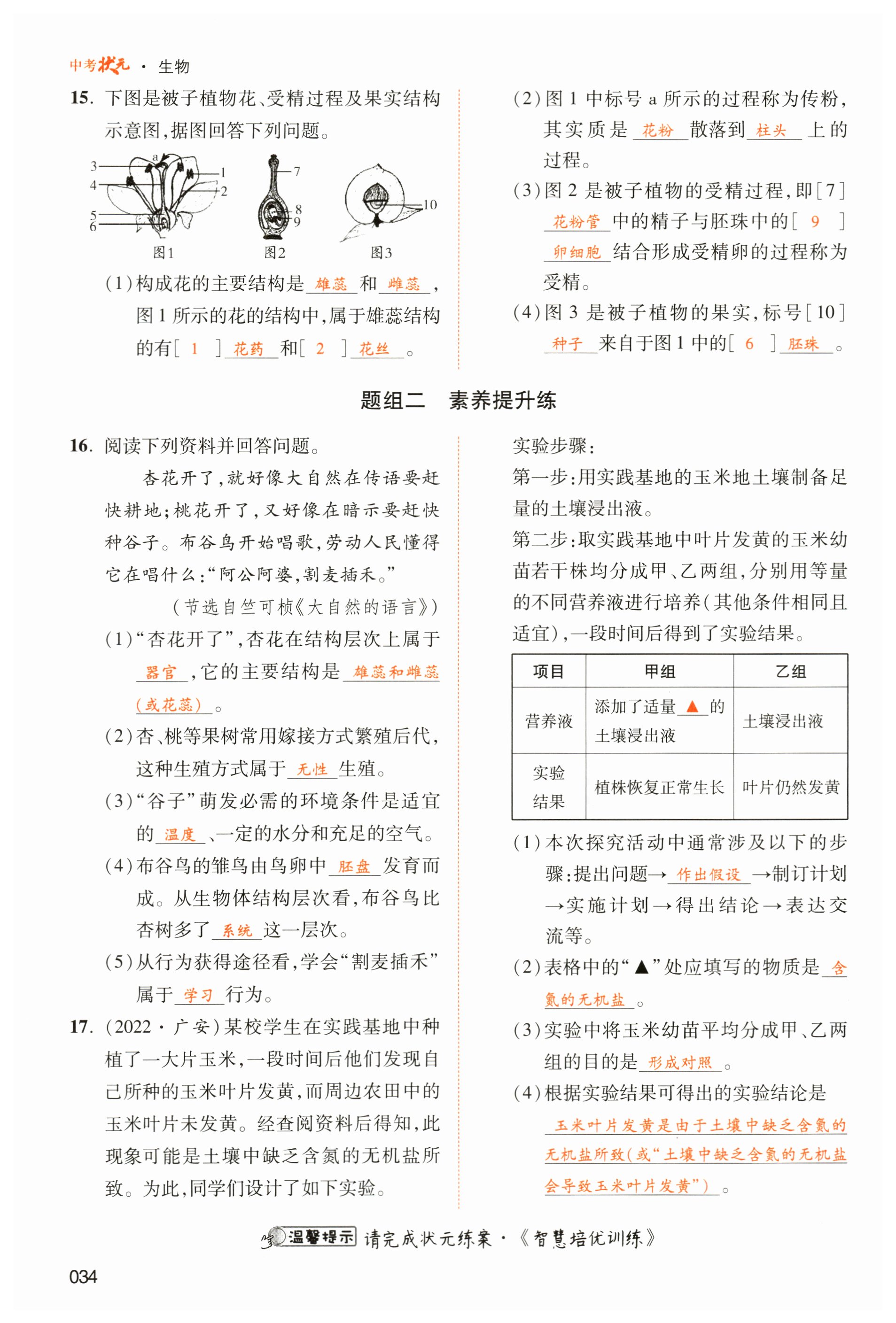 注:目前有些书本章节名称可能整理的还不是很完善,但都是按照顺序排列的,请同学们按照顺序仔细查找。练习册 2024年中考状元生物 答案主要是用来给同学们做完题方便对答案用的,请勿直接抄袭。