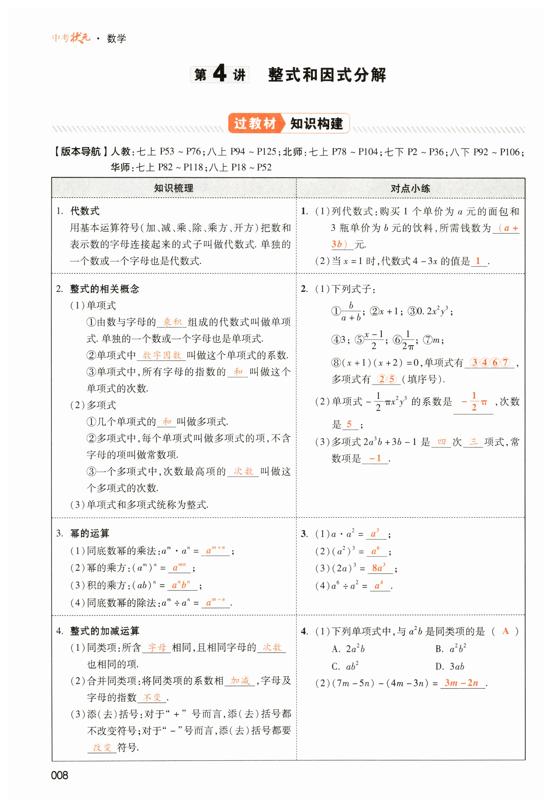 注:目前有些书本章节名称可能整理的还不是很完善,但都是按照顺序排列的,请同学们按照顺序仔细查找。练习册 2024年中考状元数学 答案主要是用来给同学们做完题方便对答案用的,请勿直接抄袭。