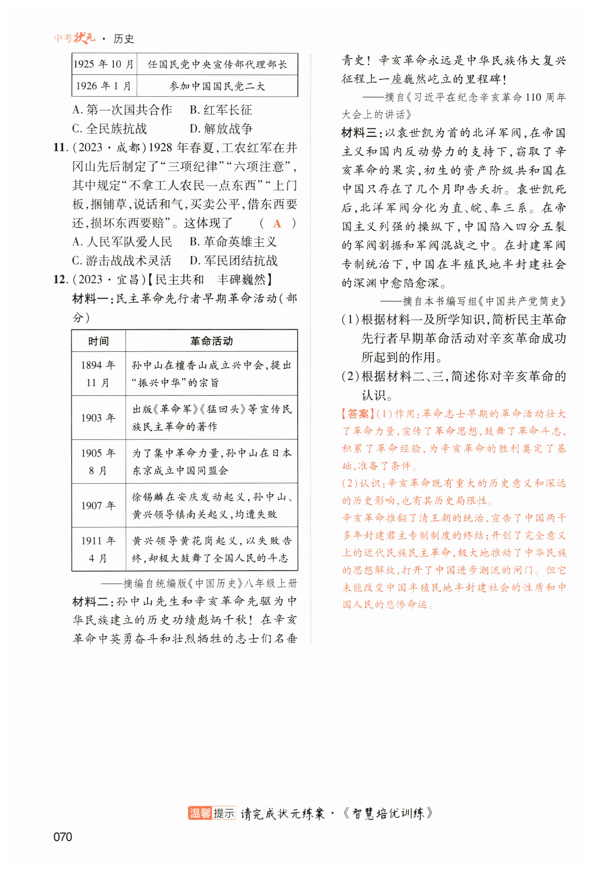 注:目前有些书本章节名称可能整理的还不是很完善,但都是按照顺序排列的,请同学们按照顺序仔细查找。练习册 2024年中考状元历史 答案主要是用来给同学们做完题方便对答案用的,请勿直接抄袭。