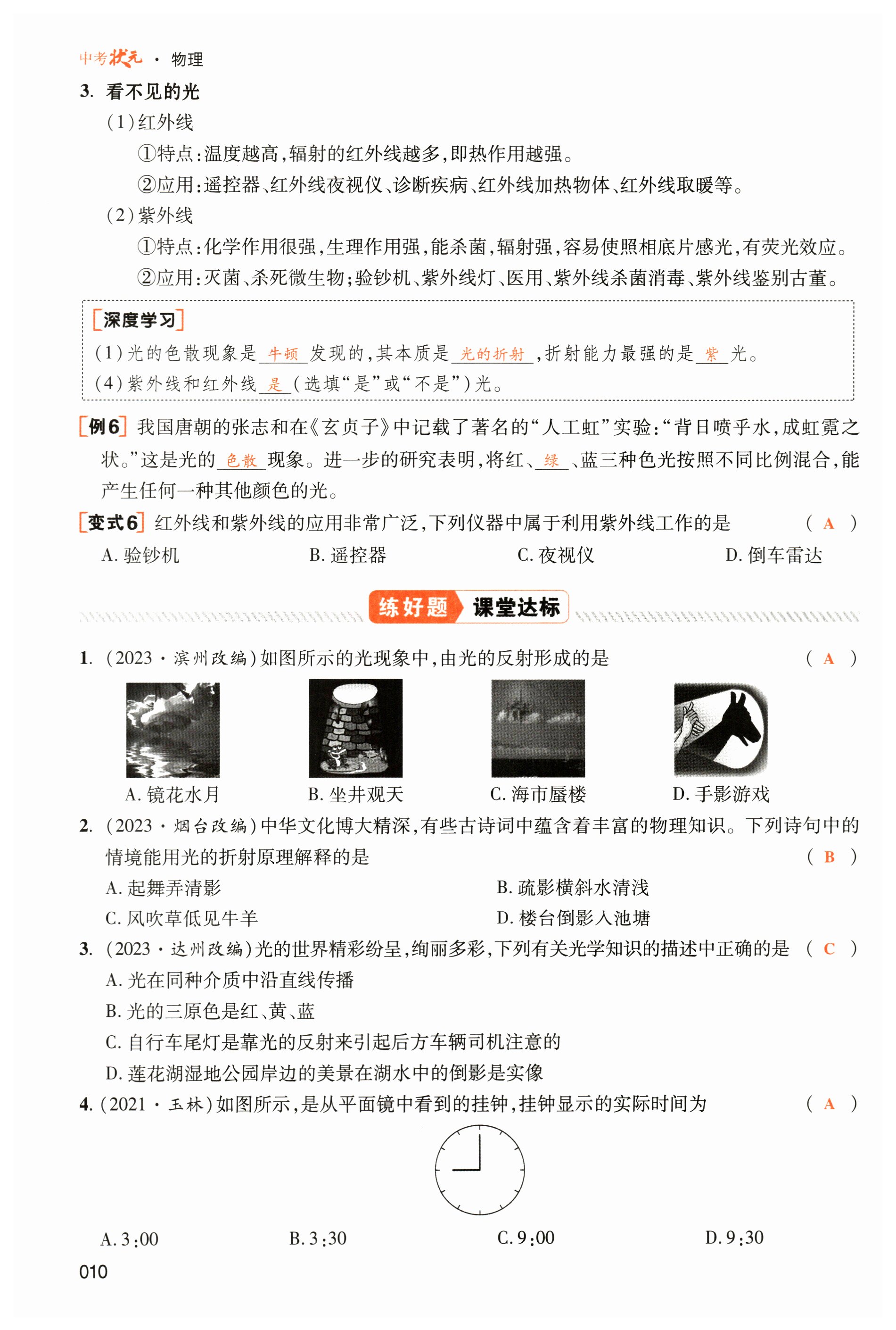 注:目前有些书本章节名称可能整理的还不是很完善,但都是按照顺序排列的,请同学们按照顺序仔细查找。练习册 2024年中考状元物理 答案主要是用来给同学们做完题方便对答案用的,请勿直接抄袭。