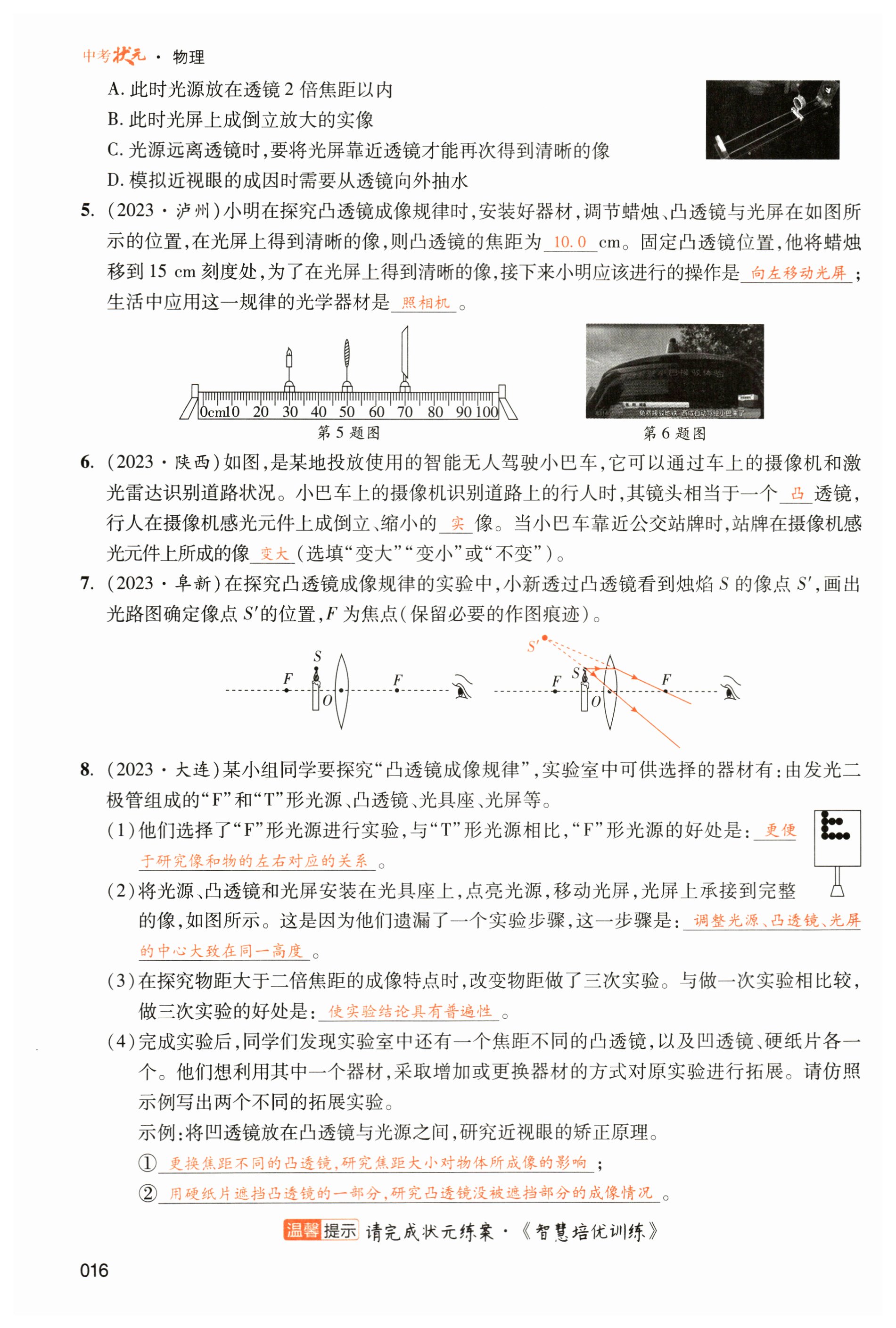 注:目前有些书本章节名称可能整理的还不是很完善,但都是按照顺序排列的,请同学们按照顺序仔细查找。练习册 2024年中考状元物理 答案主要是用来给同学们做完题方便对答案用的,请勿直接抄袭。