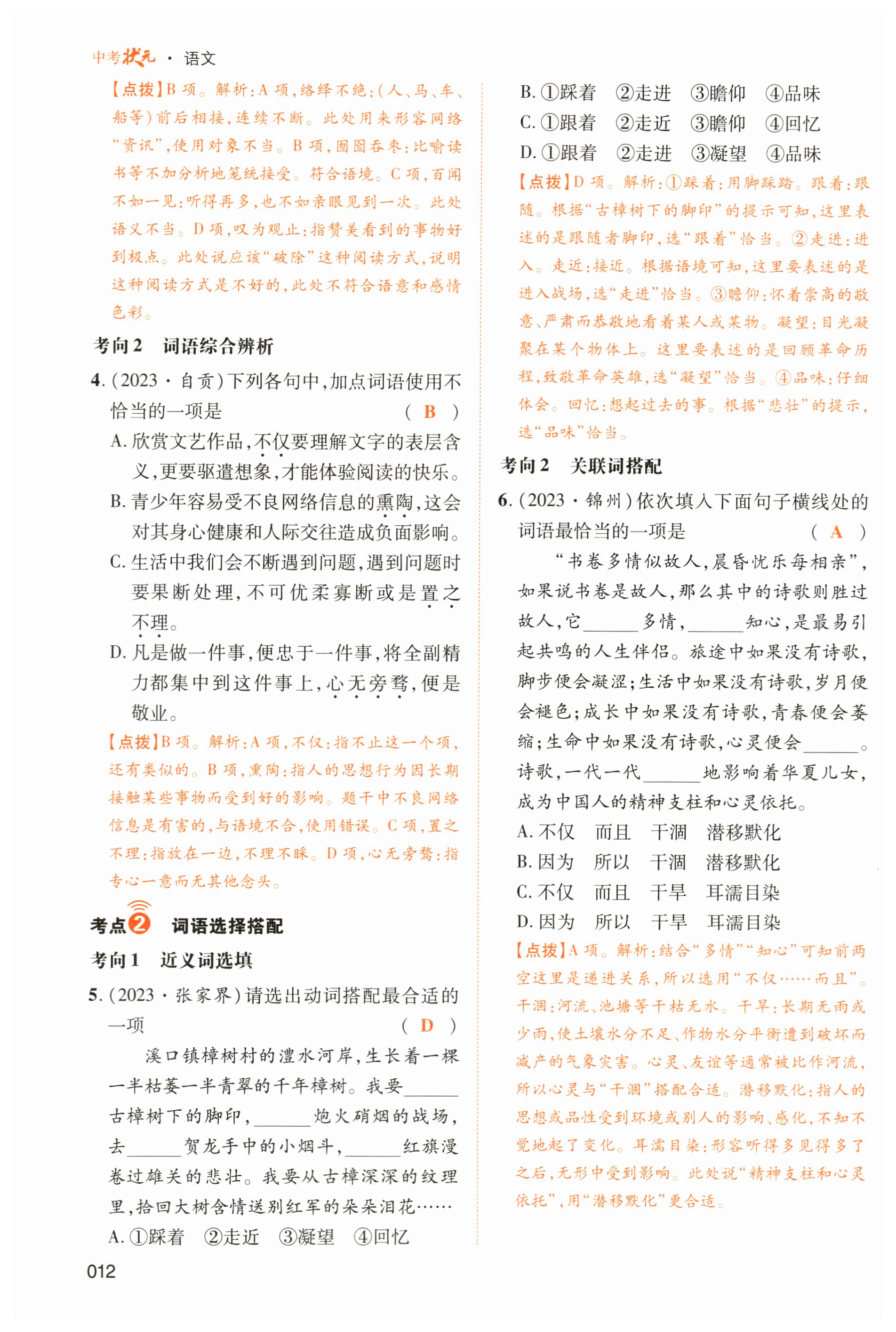 注:目前有些书本章节名称可能整理的还不是很完善,但都是按照顺序排列的,请同学们按照顺序仔细查找。练习册 2024年中考状元语文 答案主要是用来给同学们做完题方便对答案用的,请勿直接抄袭。
