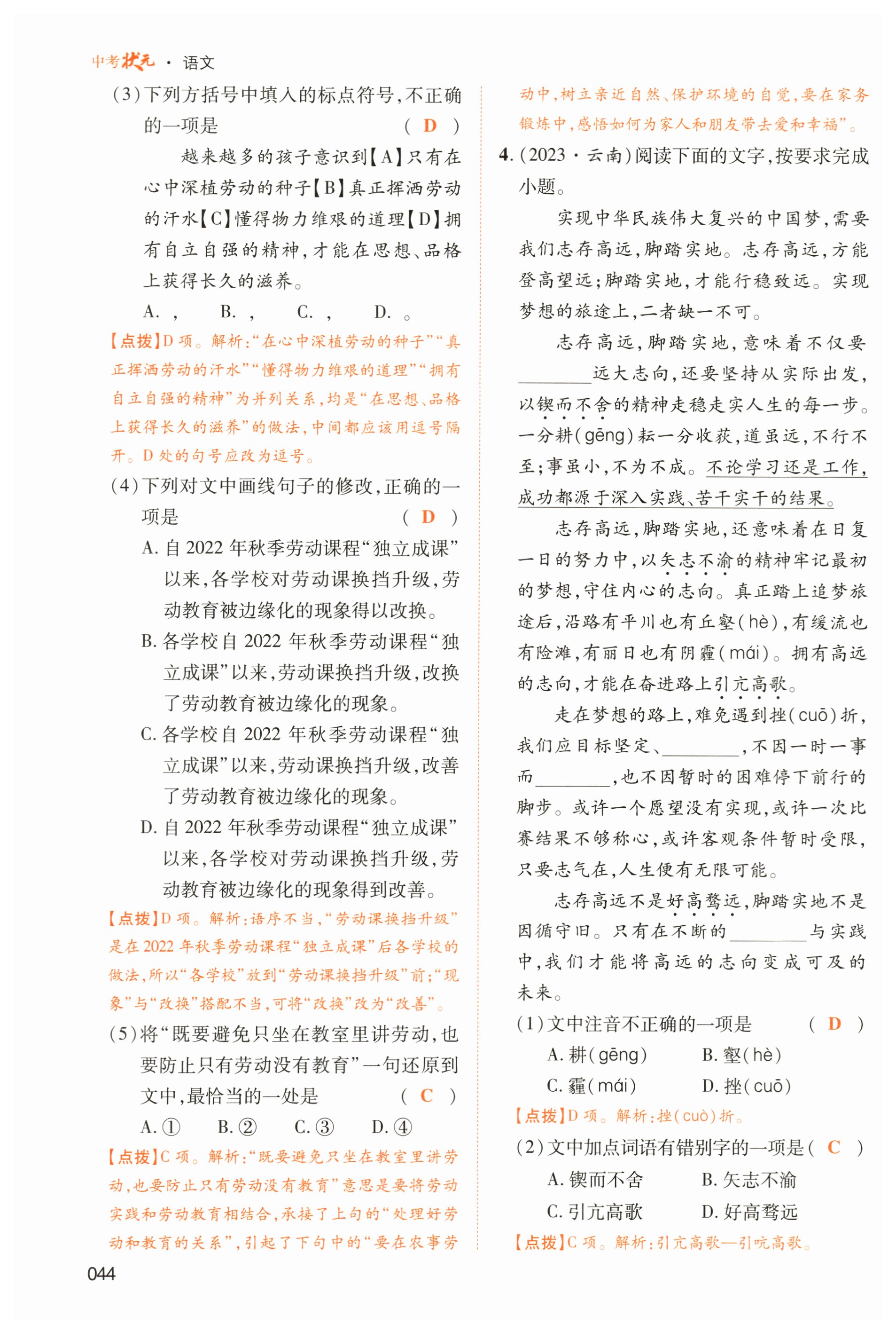 注:目前有些书本章节名称可能整理的还不是很完善,但都是按照顺序排列的,请同学们按照顺序仔细查找。练习册 2024年中考状元语文 答案主要是用来给同学们做完题方便对答案用的,请勿直接抄袭。