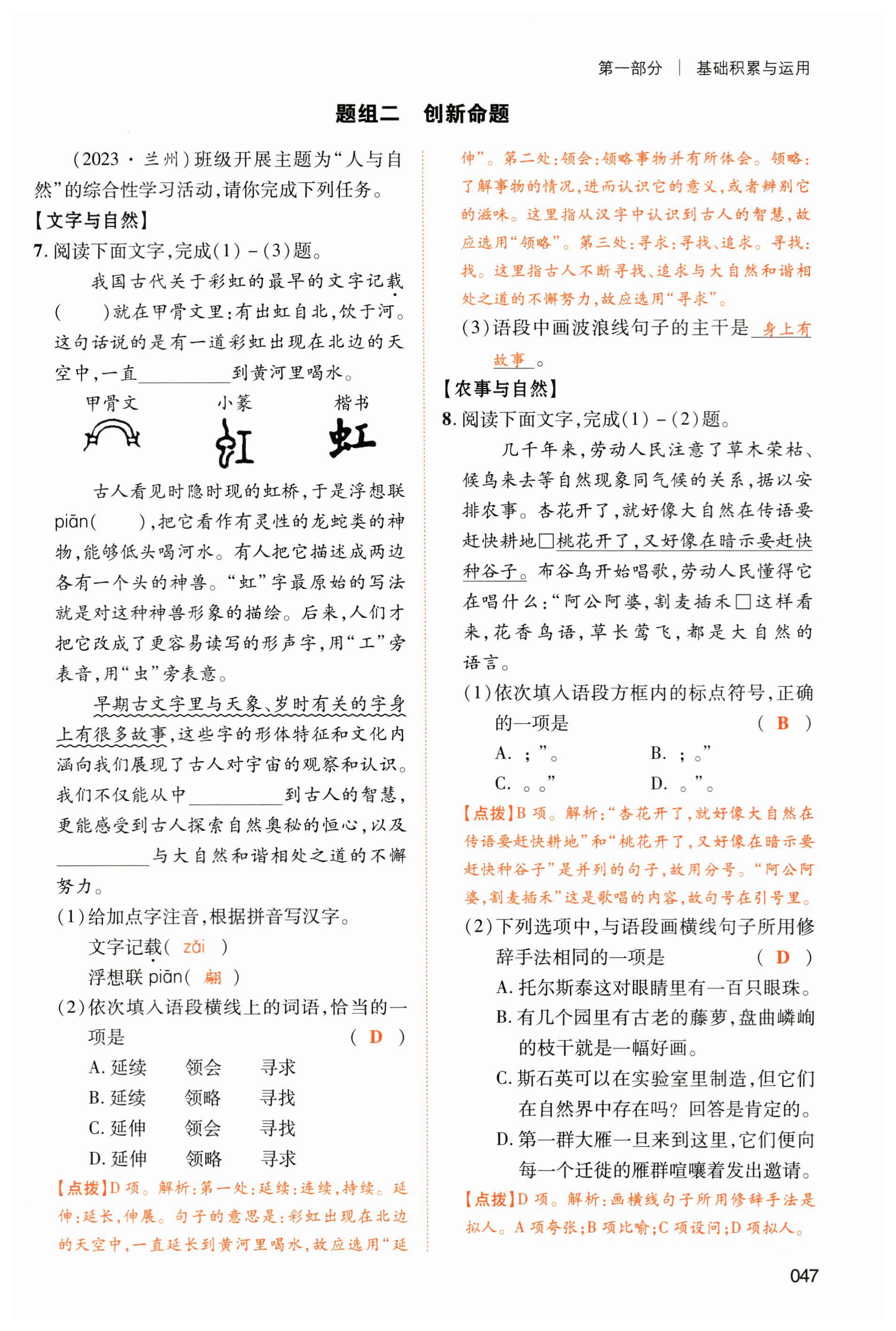 注:目前有些书本章节名称可能整理的还不是很完善,但都是按照顺序排列的,请同学们按照顺序仔细查找。练习册 2024年中考状元语文 答案主要是用来给同学们做完题方便对答案用的,请勿直接抄袭。