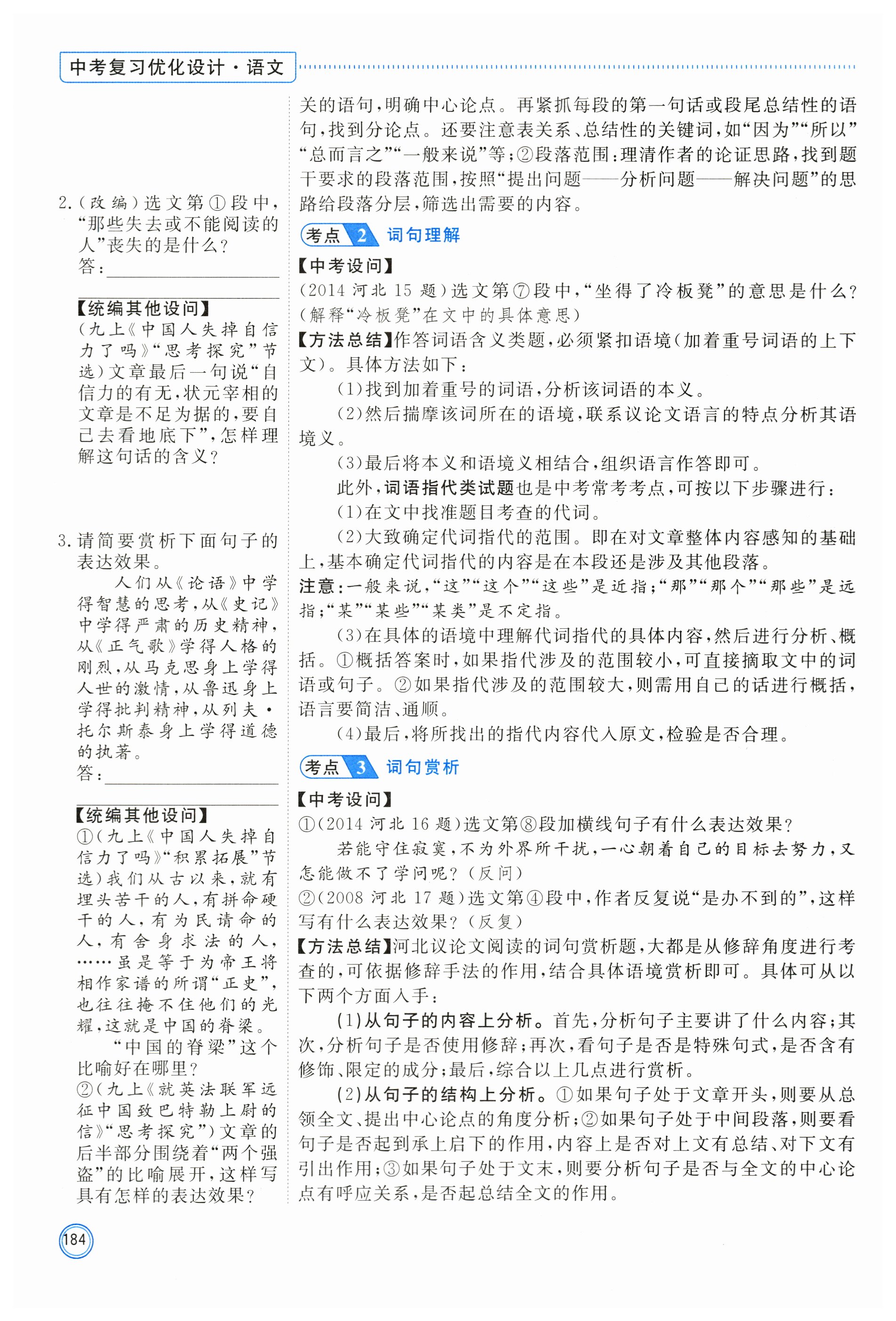 注:目前有些书本章节名称可能整理的还不是很完善,但都是按照顺序排列的,请同学们按照顺序仔细查找。练习册 2024年冀考金榜中考总复习优化设计语文 答案主要是用来给同学们做完题方便对答案用的,请勿直接抄袭。
