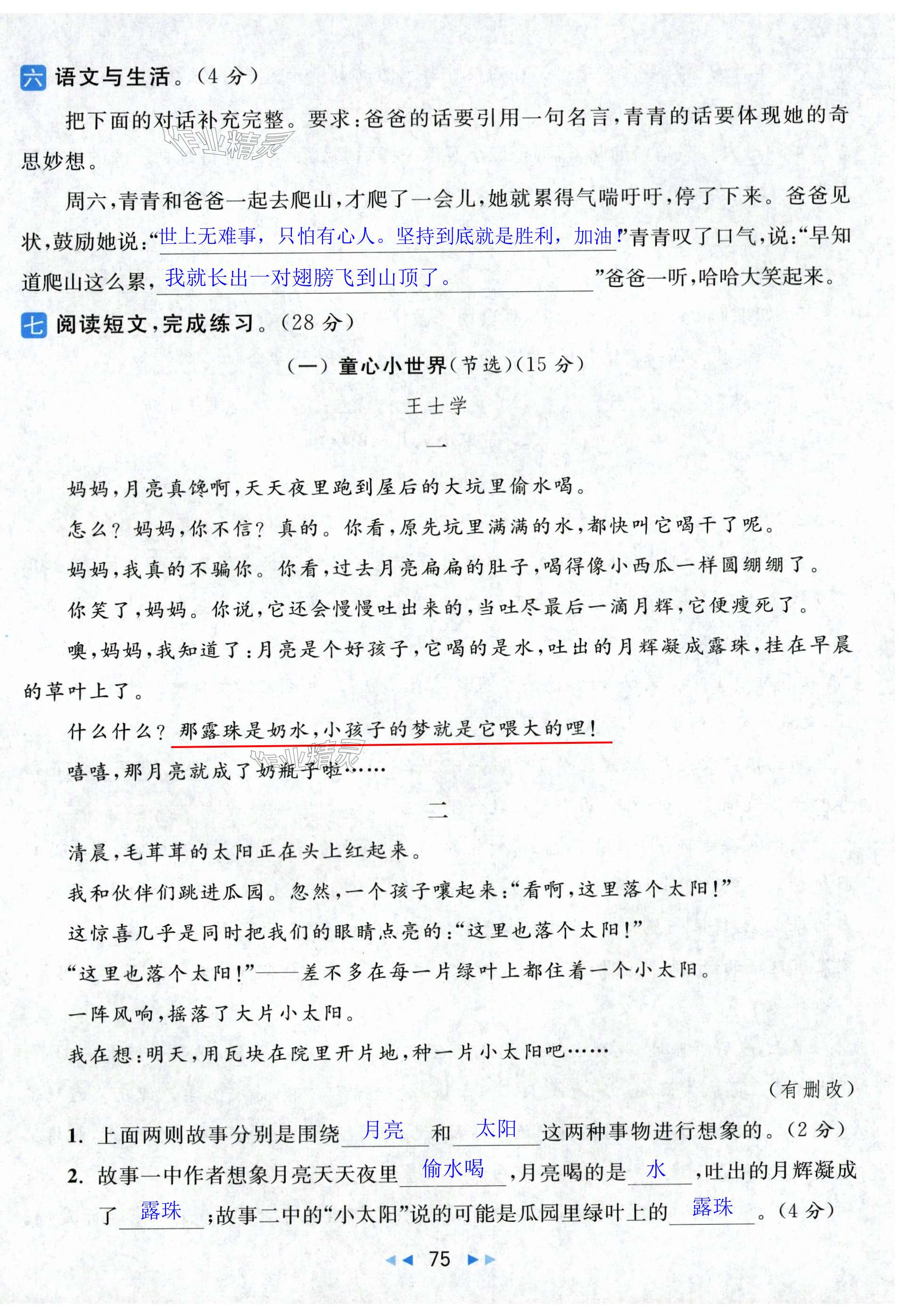 注:目前有些书本章节名称可能整理的还不是很完善,但都是按照顺序排列的,请同学们按照顺序仔细查找。练习册 2024年亮点给力大试卷三年级语文下册人教版 答案主要是用来给同学们做完题方便对答案用的,请勿直接抄袭。