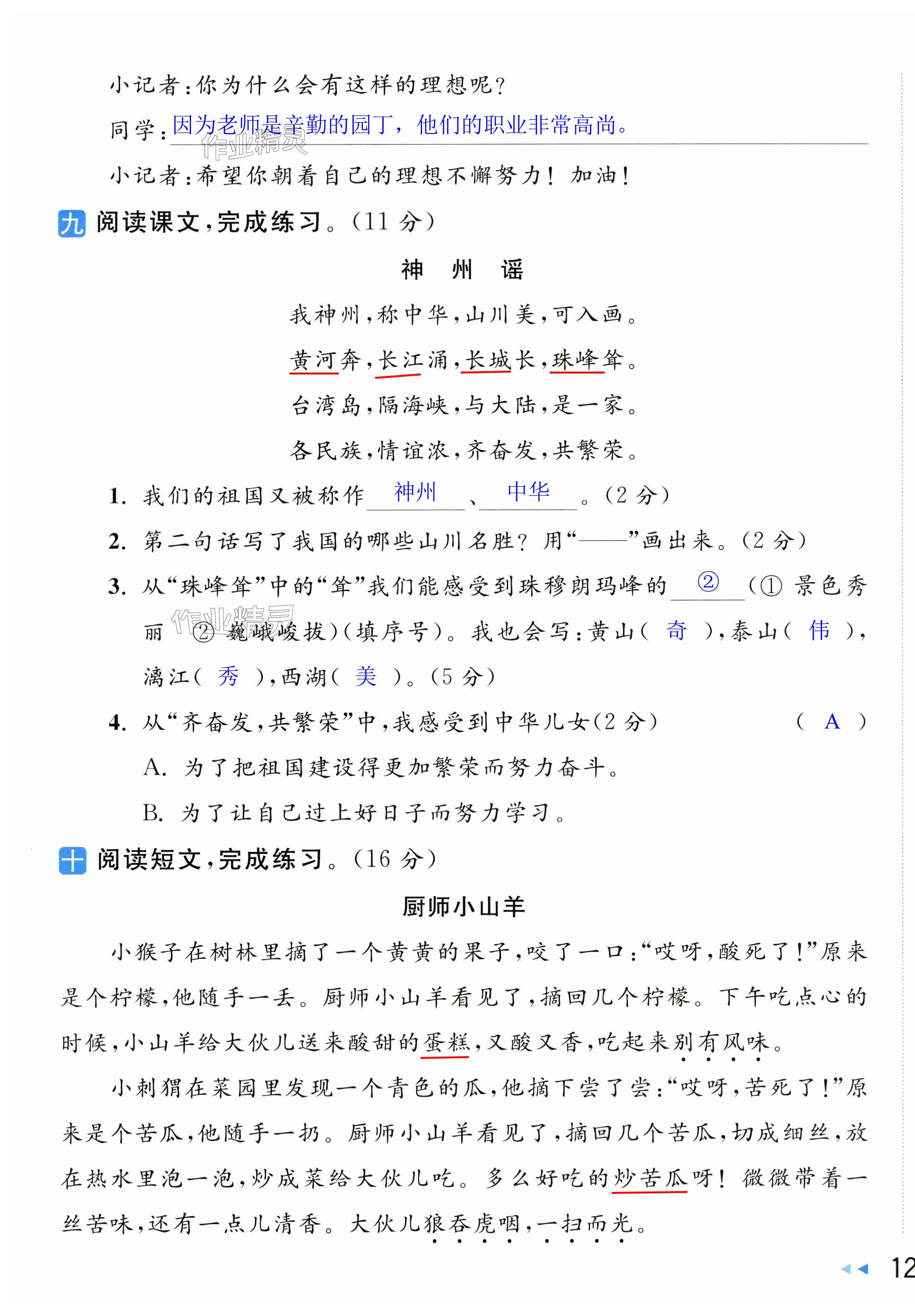 注:目前有些书本章节名称可能整理的还不是很完善,但都是按照顺序排列的,请同学们按照顺序仔细查找。练习册 2024年亮点给力大试卷二年级语文下册人教版 答案主要是用来给同学们做完题方便对答案用的,请勿直接抄袭。
