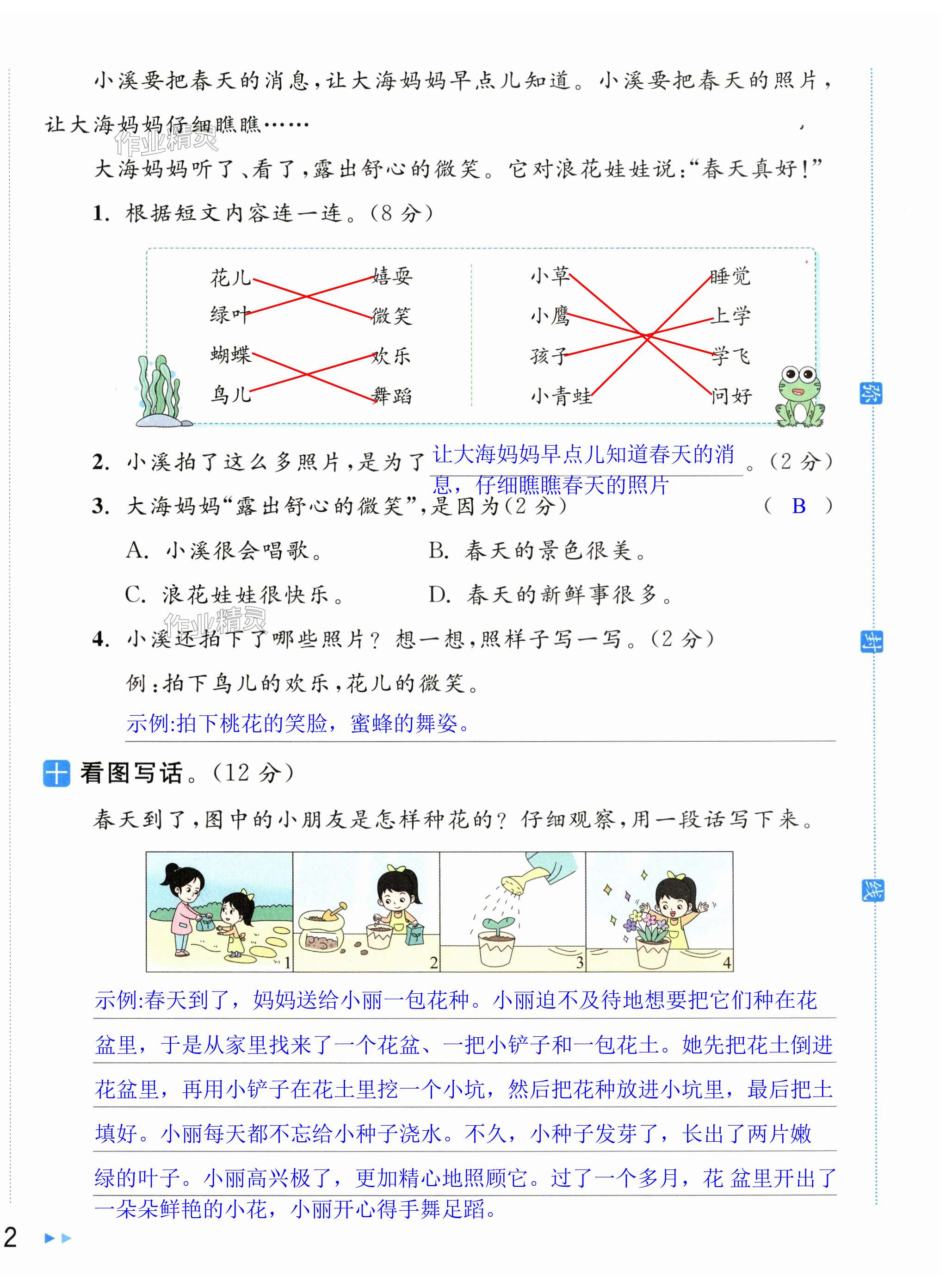 注:目前有些书本章节名称可能整理的还不是很完善,但都是按照顺序排列的,请同学们按照顺序仔细查找。练习册 2024年亮点给力大试卷二年级语文下册人教版 答案主要是用来给同学们做完题方便对答案用的,请勿直接抄袭。