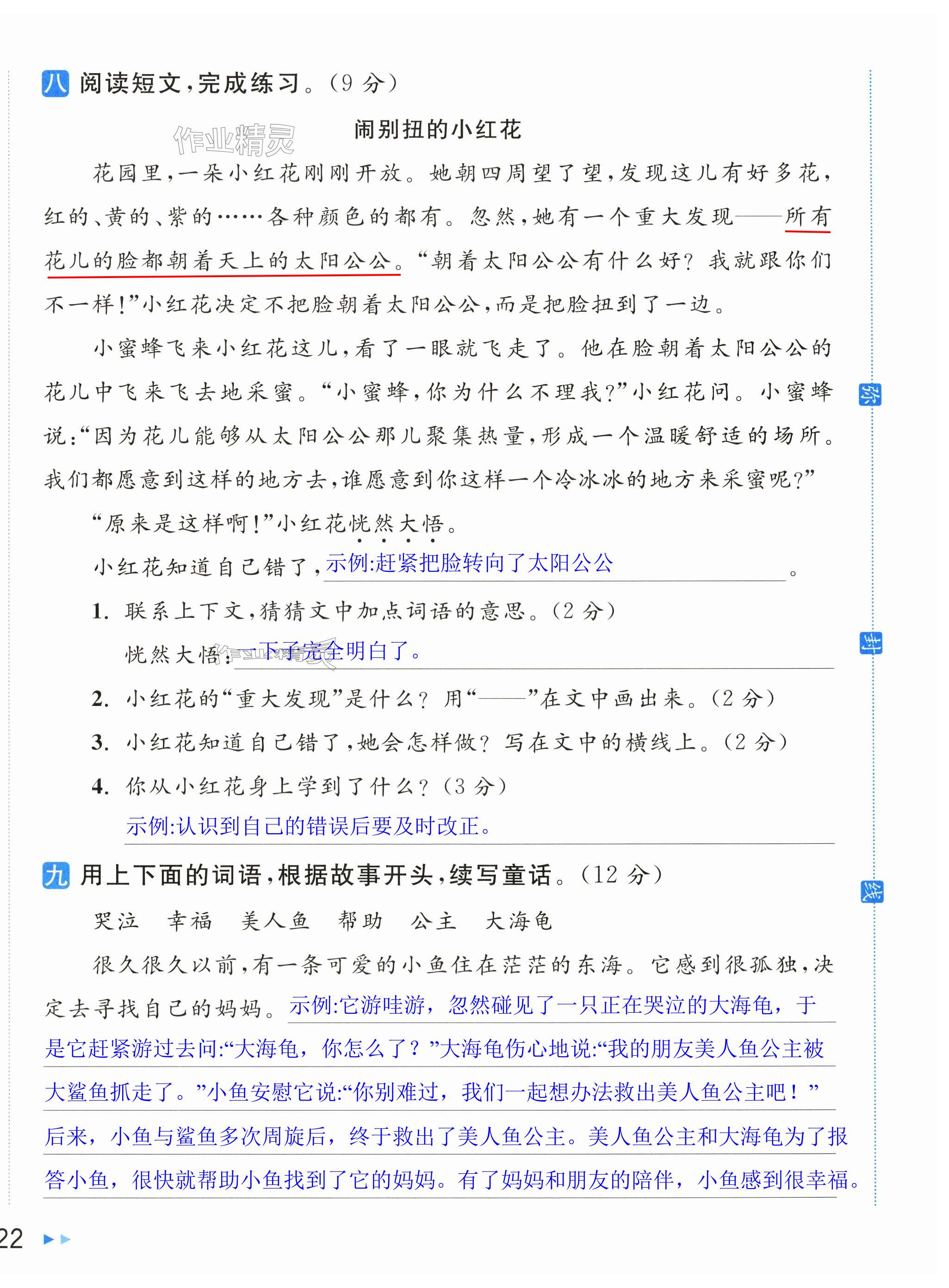 注:目前有些书本章节名称可能整理的还不是很完善,但都是按照顺序排列的,请同学们按照顺序仔细查找。练习册 2024年亮点给力大试卷二年级语文下册人教版 答案主要是用来给同学们做完题方便对答案用的,请勿直接抄袭。