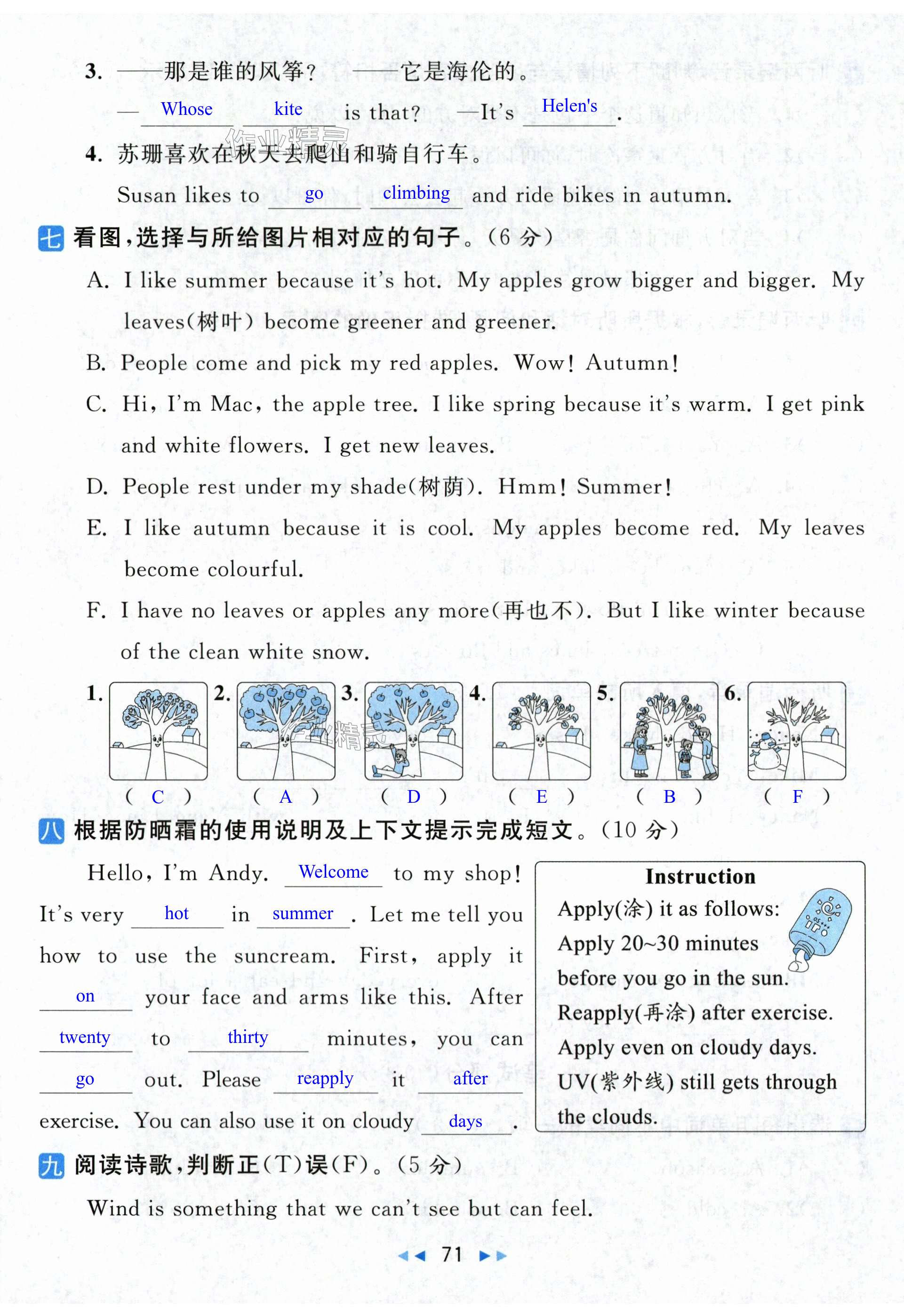 注:目前有些书本章节名称可能整理的还不是很完善,但都是按照顺序排列的,请同学们按照顺序仔细查找。练习册 2024年亮点给力大试卷四年级英语下册译林版 答案主要是用来给同学们做完题方便对答案用的,请勿直接抄袭。