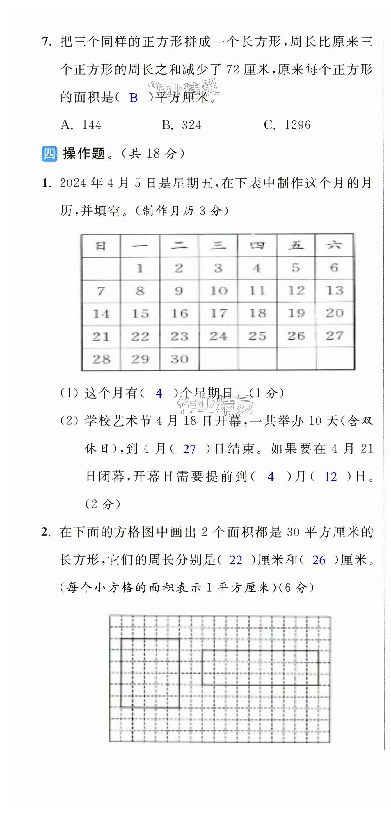 注:目前有些书本章节名称可能整理的还不是很完善,但都是按照顺序排列的,请同学们按照顺序仔细查找。练习册 2024年亮点给力大试卷三年级数学下册苏教版 答案主要是用来给同学们做完题方便对答案用的,请勿直接抄袭。