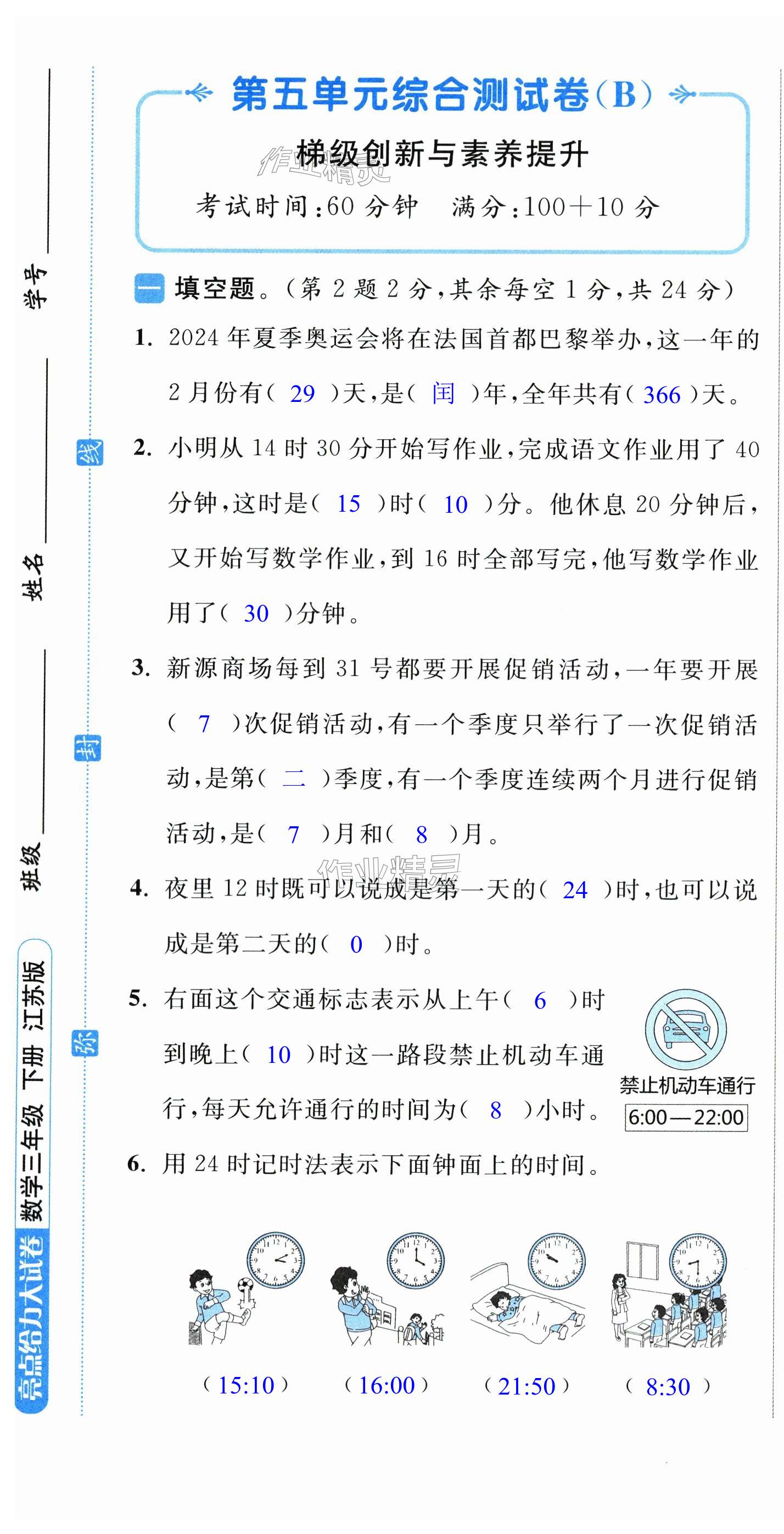 注:目前有些书本章节名称可能整理的还不是很完善,但都是按照顺序排列的,请同学们按照顺序仔细查找。练习册 2024年亮点给力大试卷三年级数学下册苏教版 答案主要是用来给同学们做完题方便对答案用的,请勿直接抄袭。