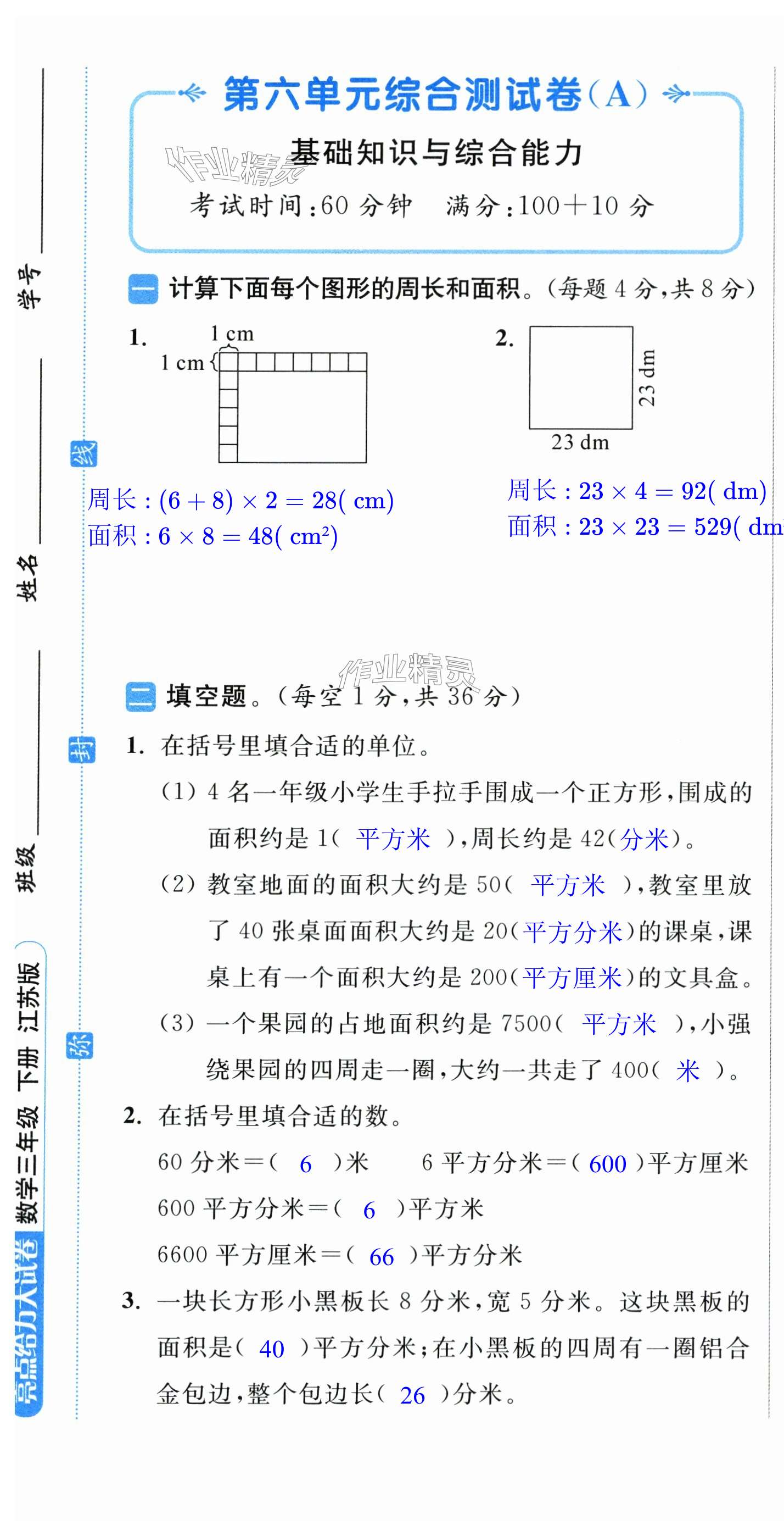 注:目前有些书本章节名称可能整理的还不是很完善,但都是按照顺序排列的,请同学们按照顺序仔细查找。练习册 2024年亮点给力大试卷三年级数学下册苏教版 答案主要是用来给同学们做完题方便对答案用的,请勿直接抄袭。