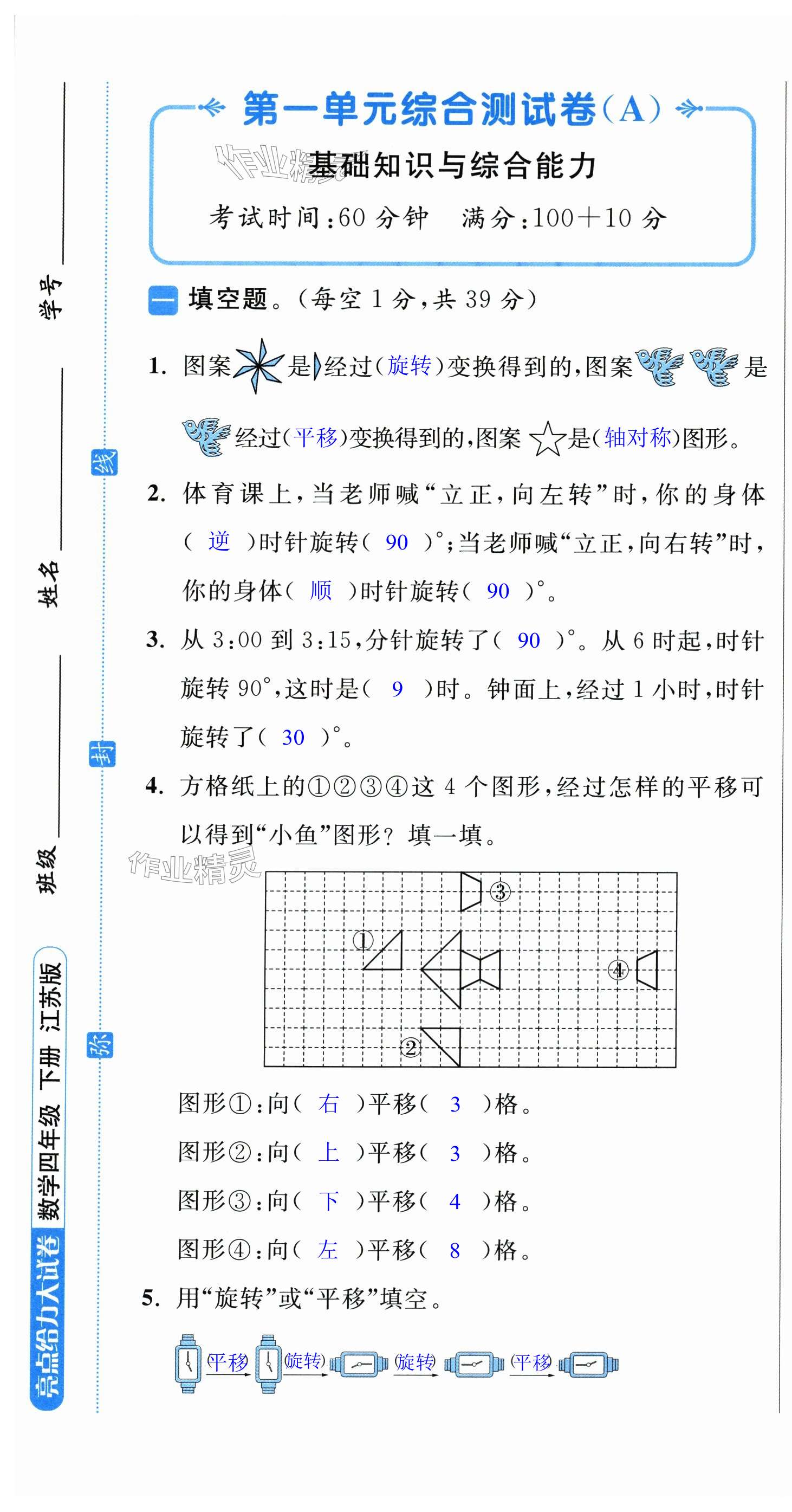 注:目前有些书本章节名称可能整理的还不是很完善,但都是按照顺序排列的,请同学们按照顺序仔细查找。练习册 2024年亮点给力大试卷四年级数学下册苏教版 答案主要是用来给同学们做完题方便对答案用的,请勿直接抄袭。
