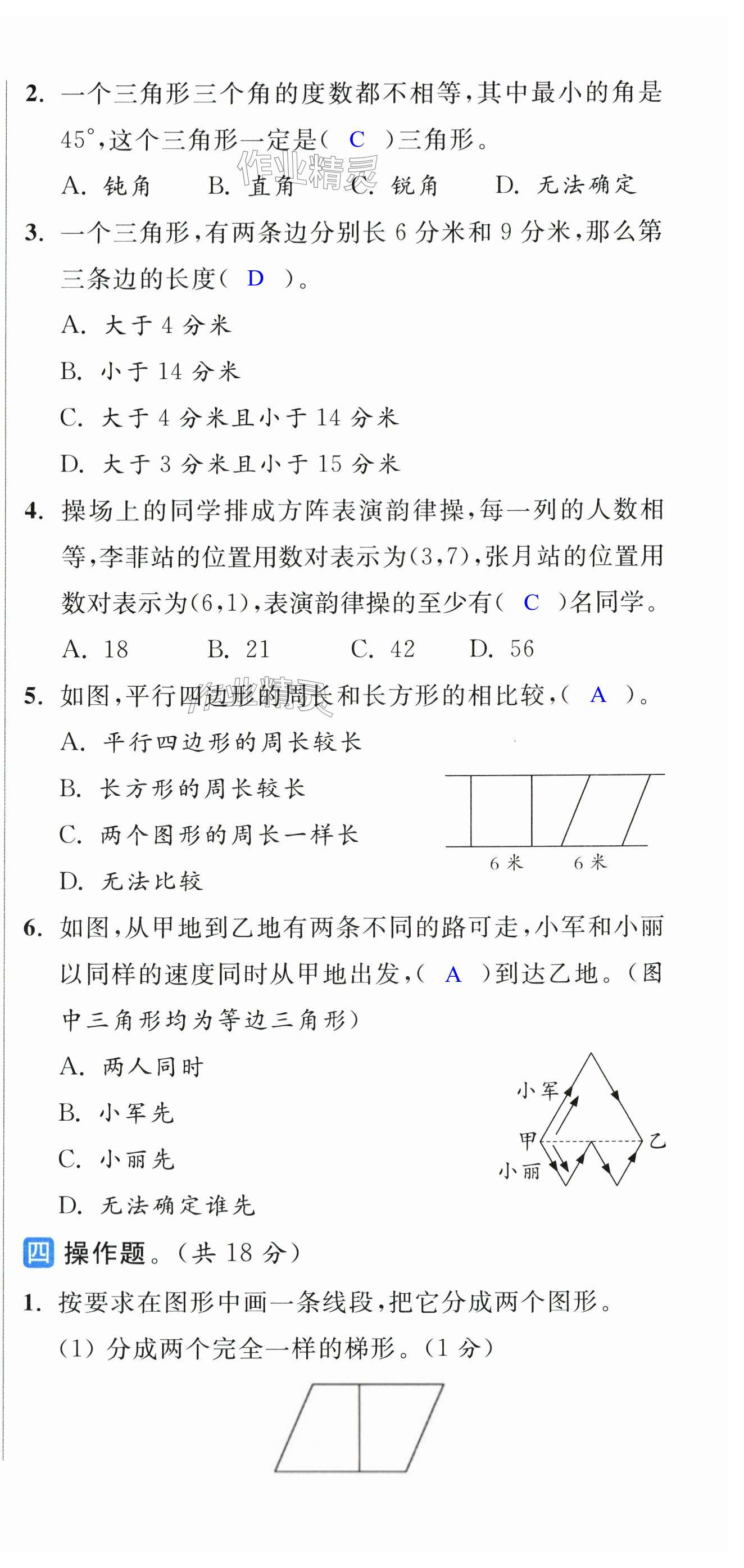 注:目前有些书本章节名称可能整理的还不是很完善,但都是按照顺序排列的,请同学们按照顺序仔细查找。练习册 2024年亮点给力大试卷四年级数学下册苏教版 答案主要是用来给同学们做完题方便对答案用的,请勿直接抄袭。
