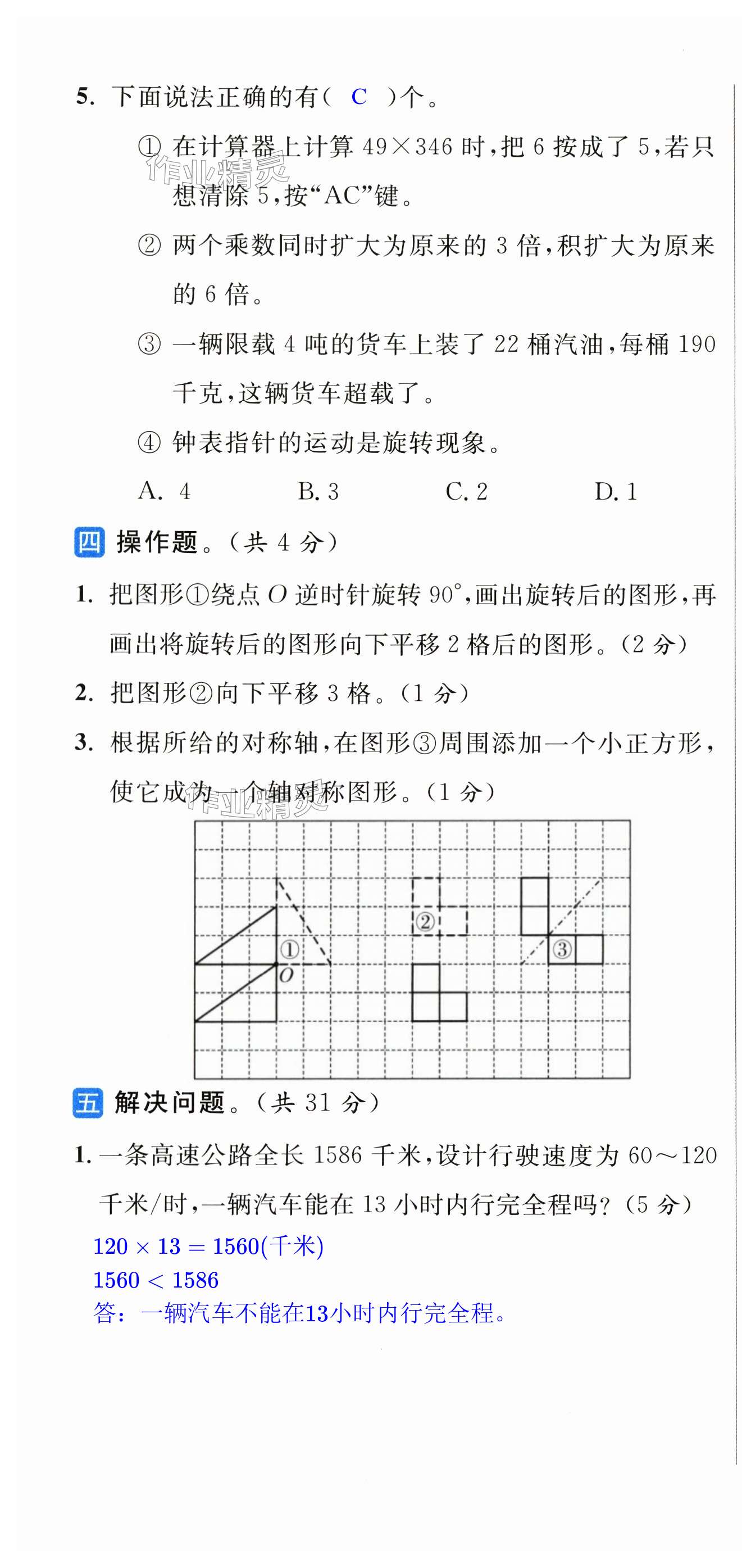 注:目前有些书本章节名称可能整理的还不是很完善,但都是按照顺序排列的,请同学们按照顺序仔细查找。练习册 2024年亮点给力大试卷四年级数学下册苏教版 答案主要是用来给同学们做完题方便对答案用的,请勿直接抄袭。