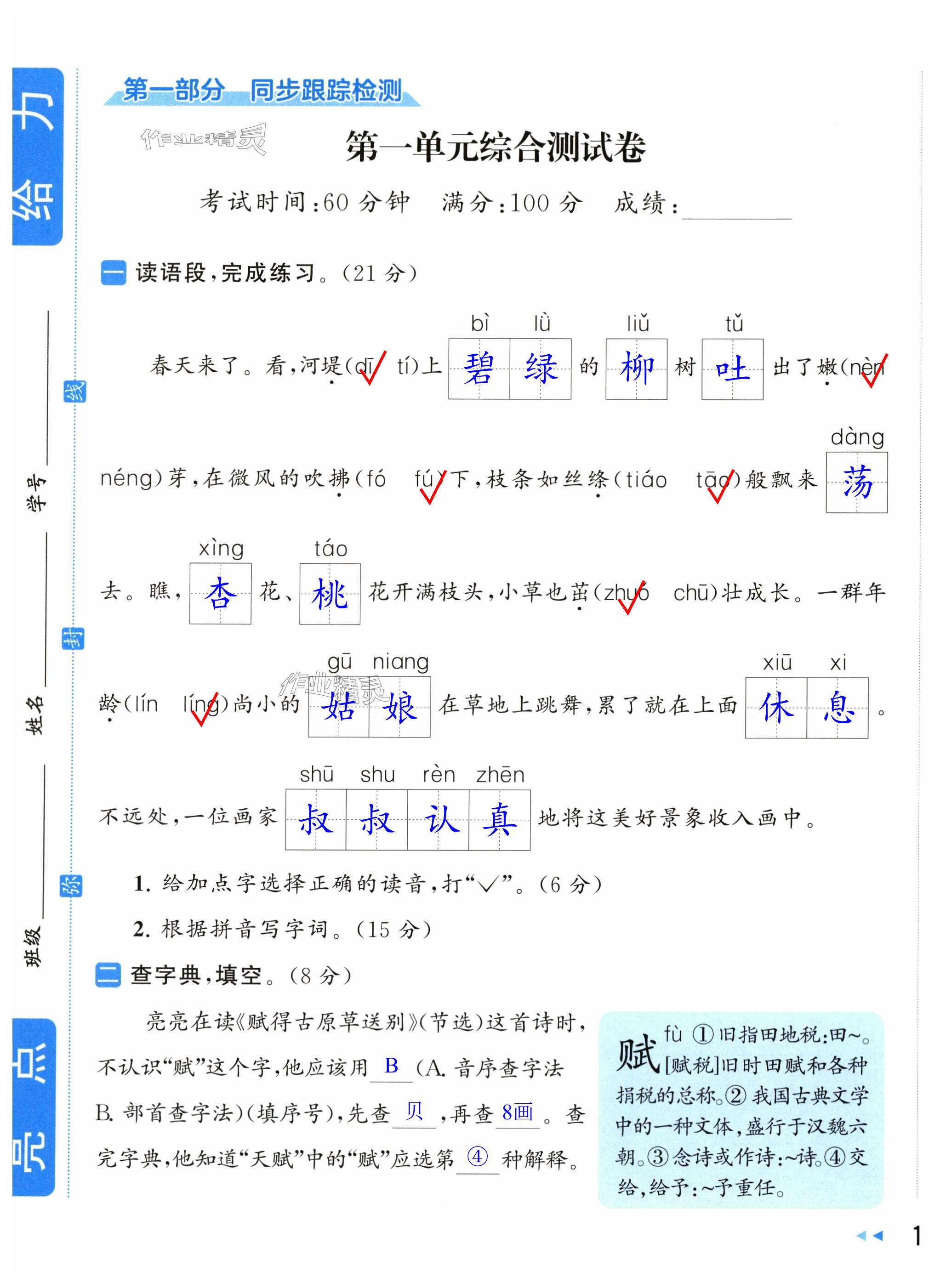 注:目前有些书本章节名称可能整理的还不是很完善,但都是按照顺序排列的,请同学们按照顺序仔细查找。练习册 2024年同步跟踪全程检测二年级语文下册人教版 答案主要是用来给同学们做完题方便对答案用的,请勿直接抄袭。